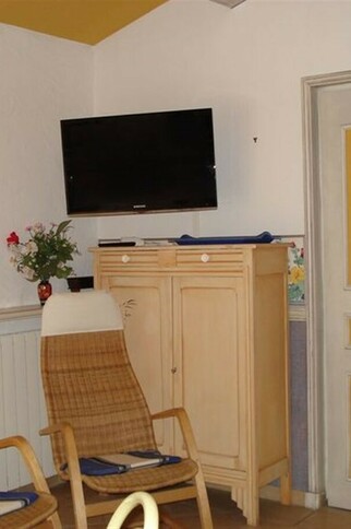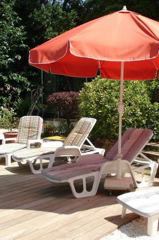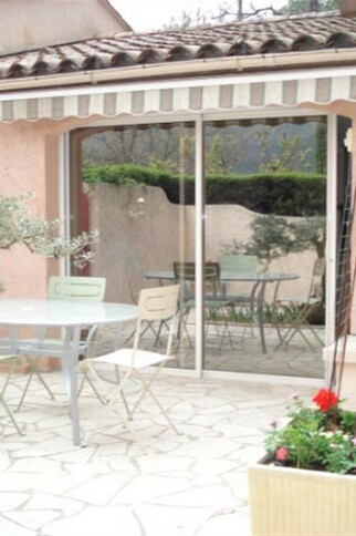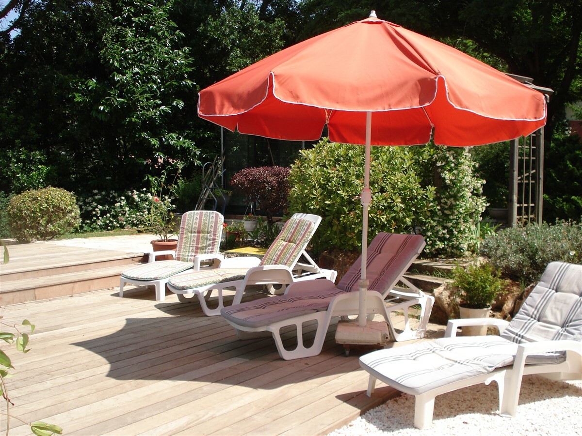 Near the village. Nice terrace in a big private garden, independent, with lounge and deck chairs.Apartment for 2/4 people.