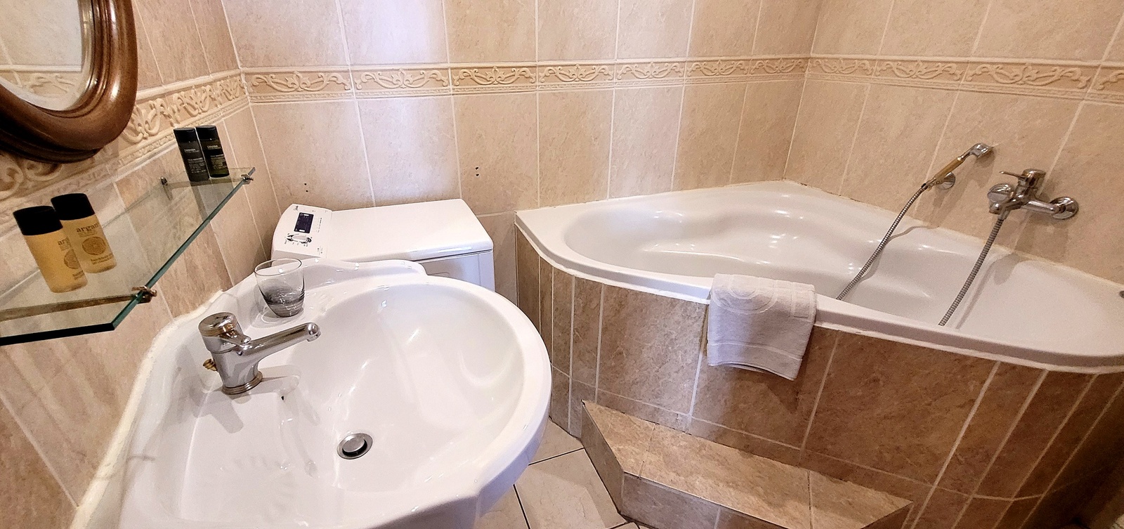 The "Frédéric Mistral" apartment has all modern comforts, air conditioning, Wi-Fi connection and a beautiful view of the village and hills. Suitable for 2 and up to 4 people.Family-friendly and comfortable, the apartment has a beautiful room with a sitting area, sofa bed and dining area. The apartment also includes a separate, fully-equipped kitchen, a bedroom with a double bed, a bathroom with a corner bathtub, and a separate toilet.