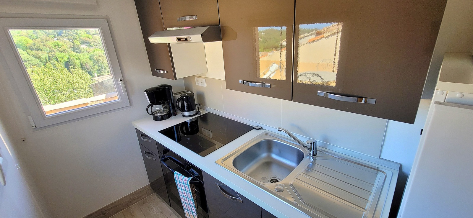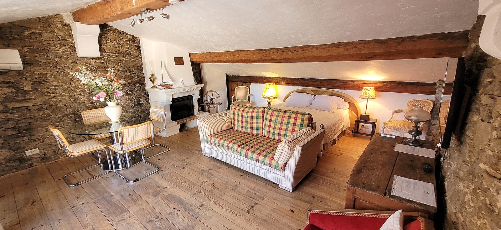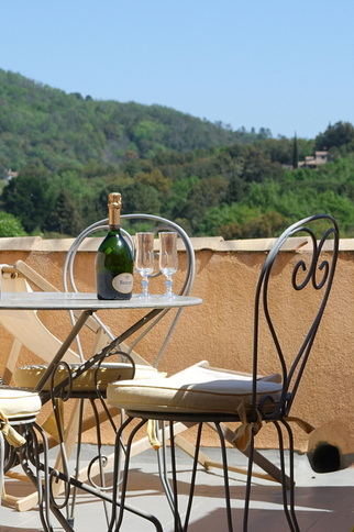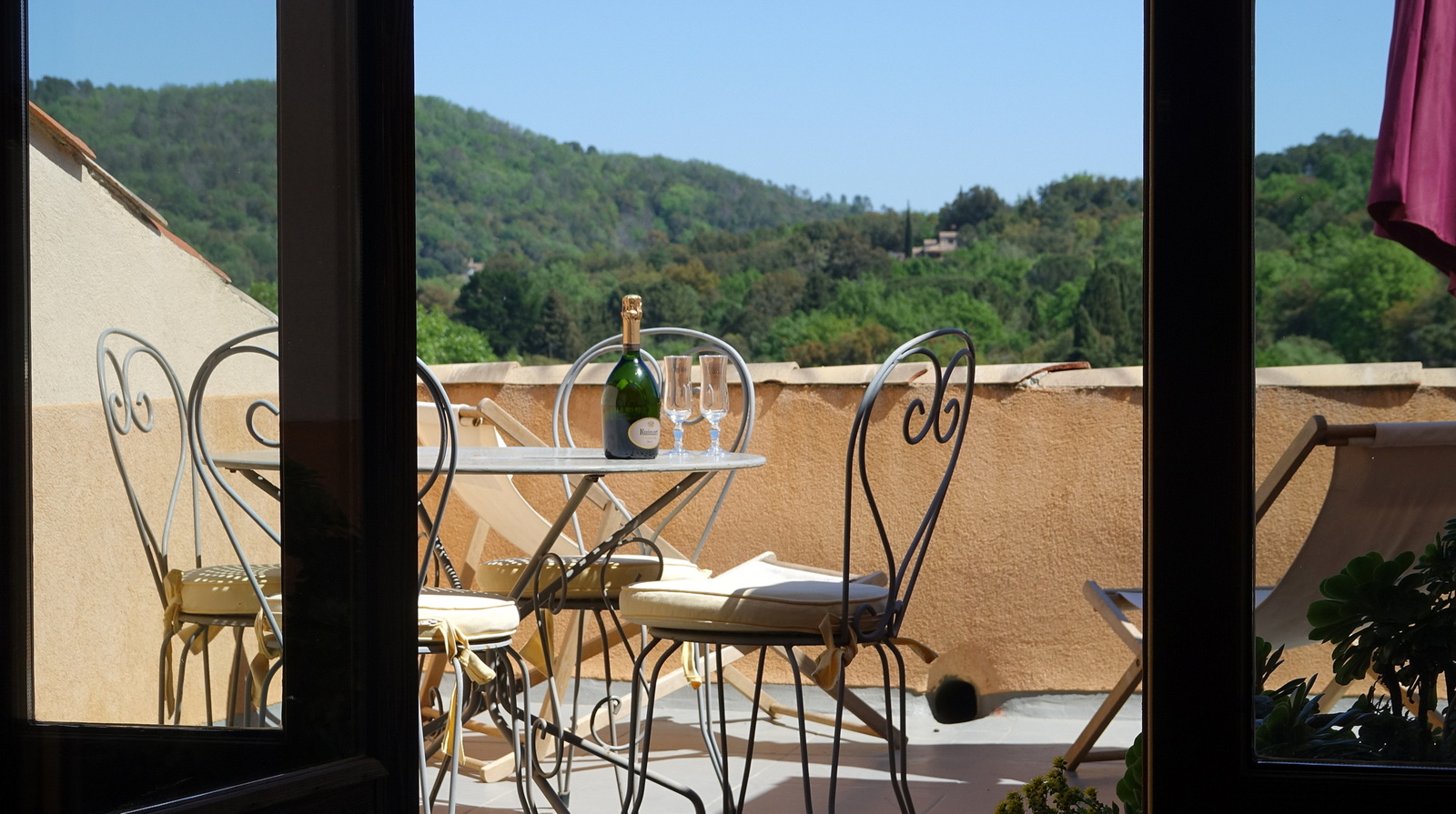 Large 40 m² studio in a village house in the heart of La Garde Freinet with a tropezian terrace and 180° view of the Massif des Maures. Ideal for a couple with a child.