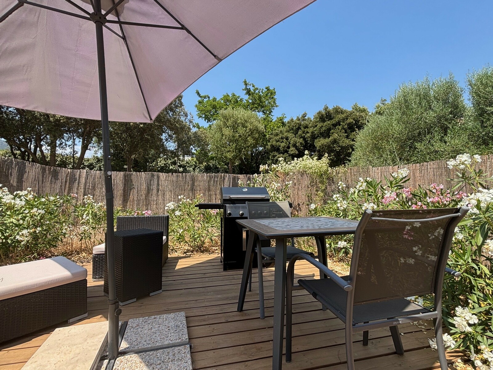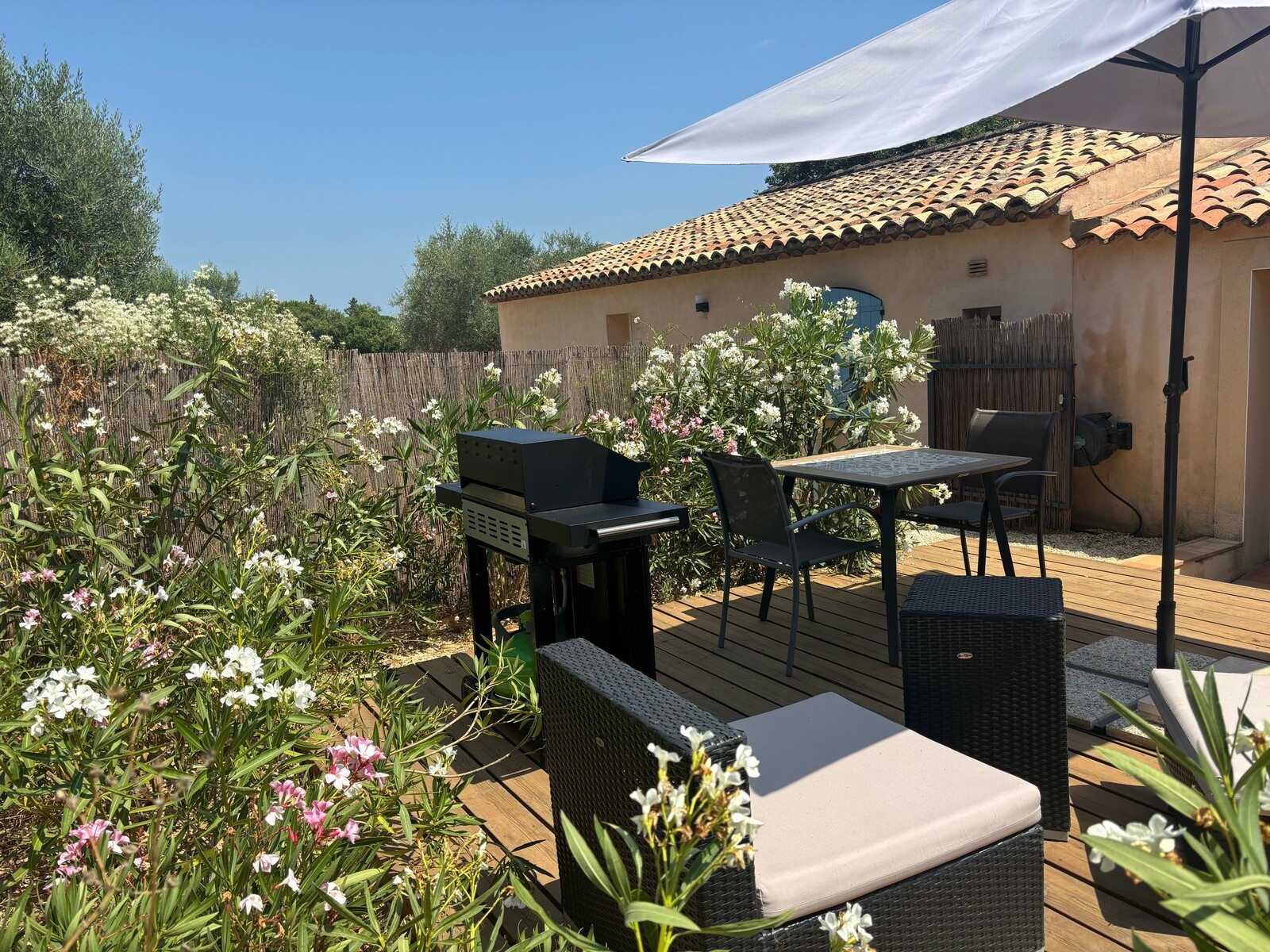 Furnished accommodation and Gîtes, Plan-de-la-Tour, 2 stars, English, French, 140 cm bed, Fridge, Heating, Air conditioning, Microwave, Hair dryer, Shower, Baby chair, Sofa bed, Baby bed, Coffee machine, Bed linen included, Television, kitchen corner, 1 shower room, Wi-fi, Towels included, Baby equipment, Private parking, Car park, Separate entrance, Garden room, Terrace, Barbecue, TV room, Bedlinen hire, Tourist brochures, Cleaning/housekeeping at end of stay, Beds made on arrival, Check, Cash, Credit transfer
