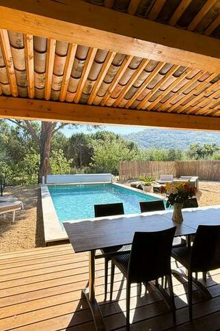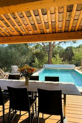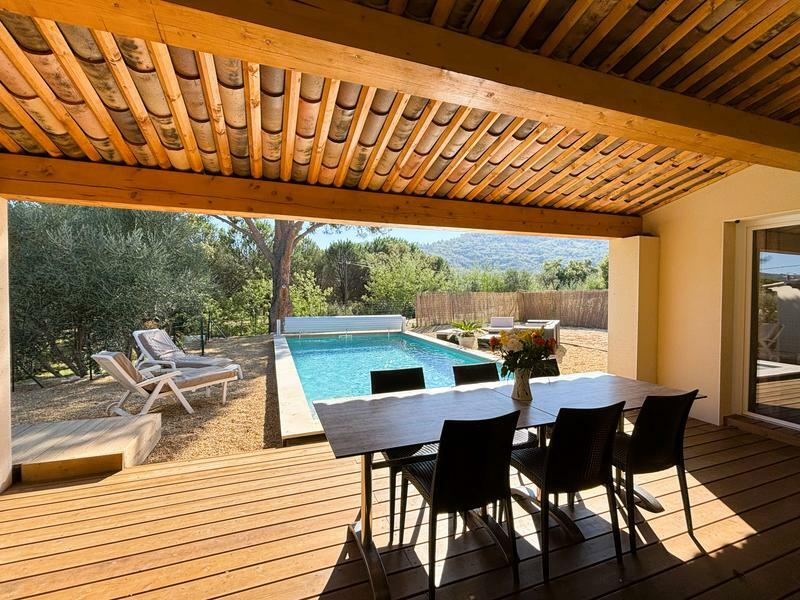 Furnished accommodation and Gîtes, Plan-de-la-Tour, 3 stars, English, French, Kitchen, Fridge, Heating, Air conditioning, Private washing machine, Dishwasher, Microwave, Hair dryer, Shower, Baby chair, Ironing facilities, Baby bed, Coffee machine, Safe, Bed linen included, Freezer, Television, 2 shower rooms, Wi-fi, Towels included, Vacuum cleaner, Baby equipment, Oven, Heated swimming pool, Swimming pool, Covered terrace, Private parking, Car park, Separate entrance, Garden room, Terrace, Garage, Barbecue, TV room, Bedlinen hire, Wi-fi, Tourist brochures, Linen hire, Cleaning/housekeeping at end of stay, Beds made on arrival, Check, Cash, Credit transfer