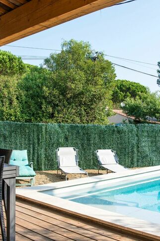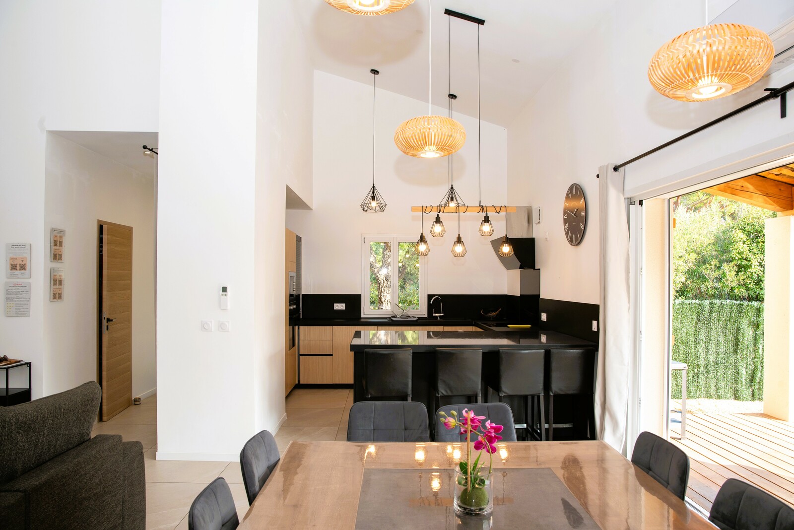 Furnished accommodation and Gîtes, Plan-de-la-Tour, 3 stars, English, French, Vacuum cleaner, Heating, Baby equipment, Wi-fi, Kitchen, Air conditioning, Safe, Freezer, Shower, Bed linen included, Oven, Private washing machine, Dishwasher, Fridge, Hair dryer, Television, 2 shower rooms, Microwave, Ironing facilities, Baby bed, Baby chair, Coffee machine, Towels included, Garden room, TV room, Terrace, Barbecue, Car park, Separate entrance, Garage, Garden, Swimming pool, Private parking, Separate garden, Heated swimming pool, Covered terrace, Bedlinen hire, Wi-fi, Tourist brochures, Linen hire, Cleaning/housekeeping at end of stay, Beds made on arrival, Check, Cash, Credit transfer
