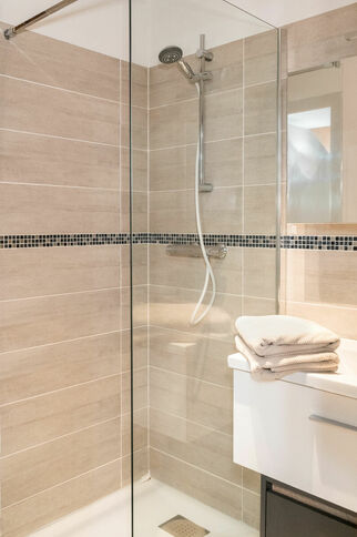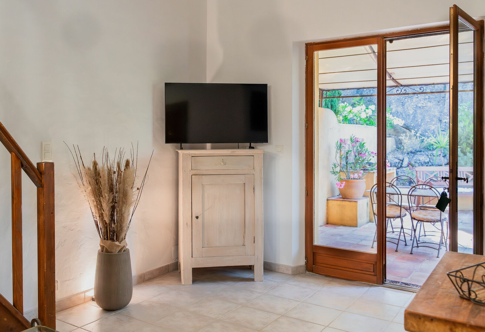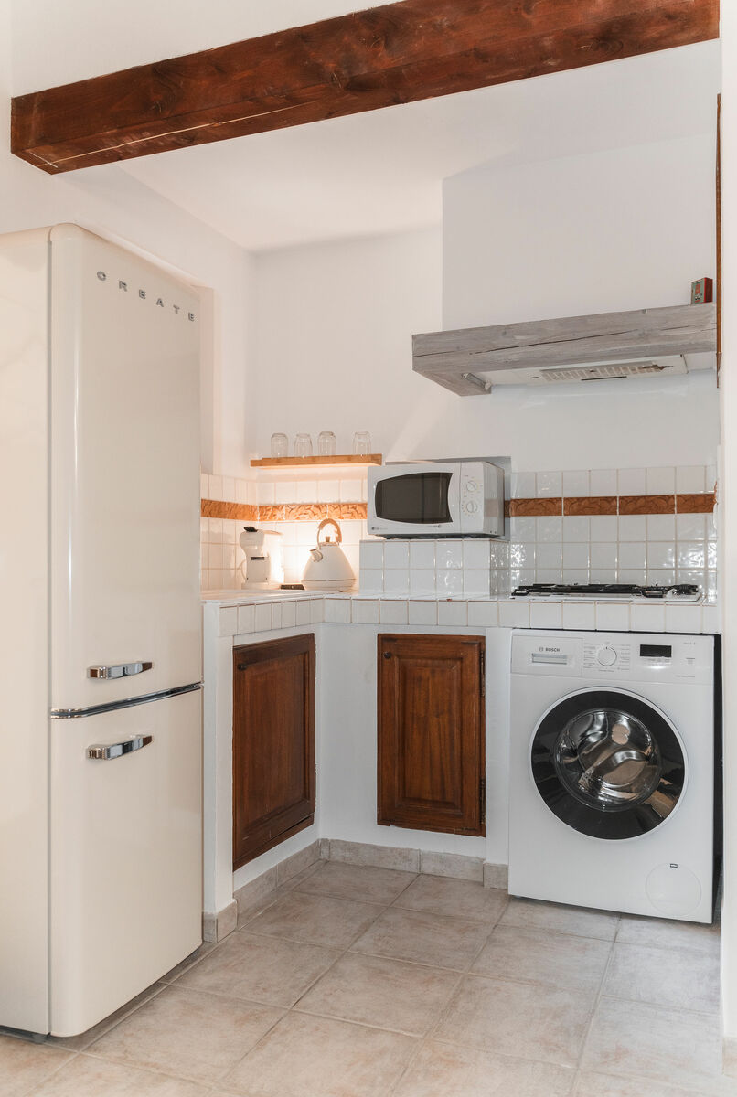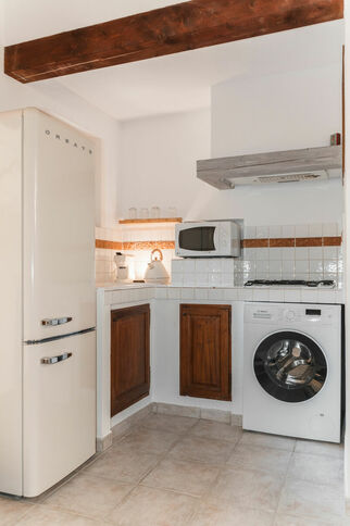 Located on the ground floor, it opens onto a private terrace perfect for relaxation. Inside, you will find a mezzanine bedroom with a 160 cm double bed, a shower room and separate WC. The fully equipped open-plan kitchen (fridge, microwave, coffee maker, kettle, washing machine) opens onto a cosy living room.