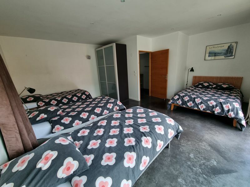 The second room module is located by the pool. It consists of a large dormitory room for children, which can accommodate up to 5 people, and a final double room. These two rooms share a beautiful bathroom.