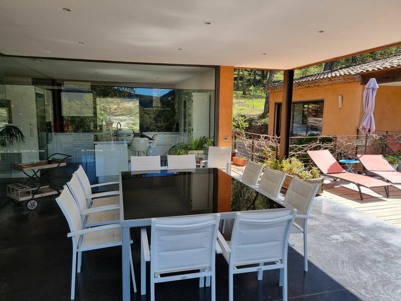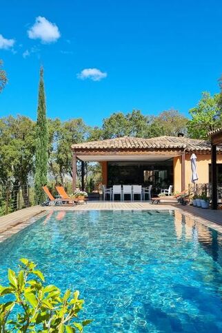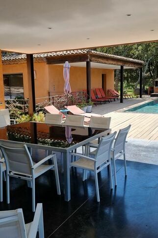 A charcoal barbecue with a small summer kitchen is built by the pool. The pool (11x5) is protected by an automatic roller shutter, for the safety of children and adults.