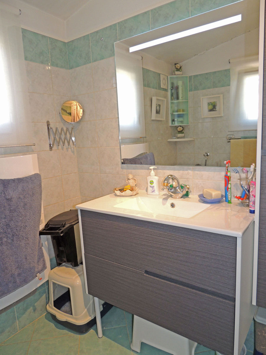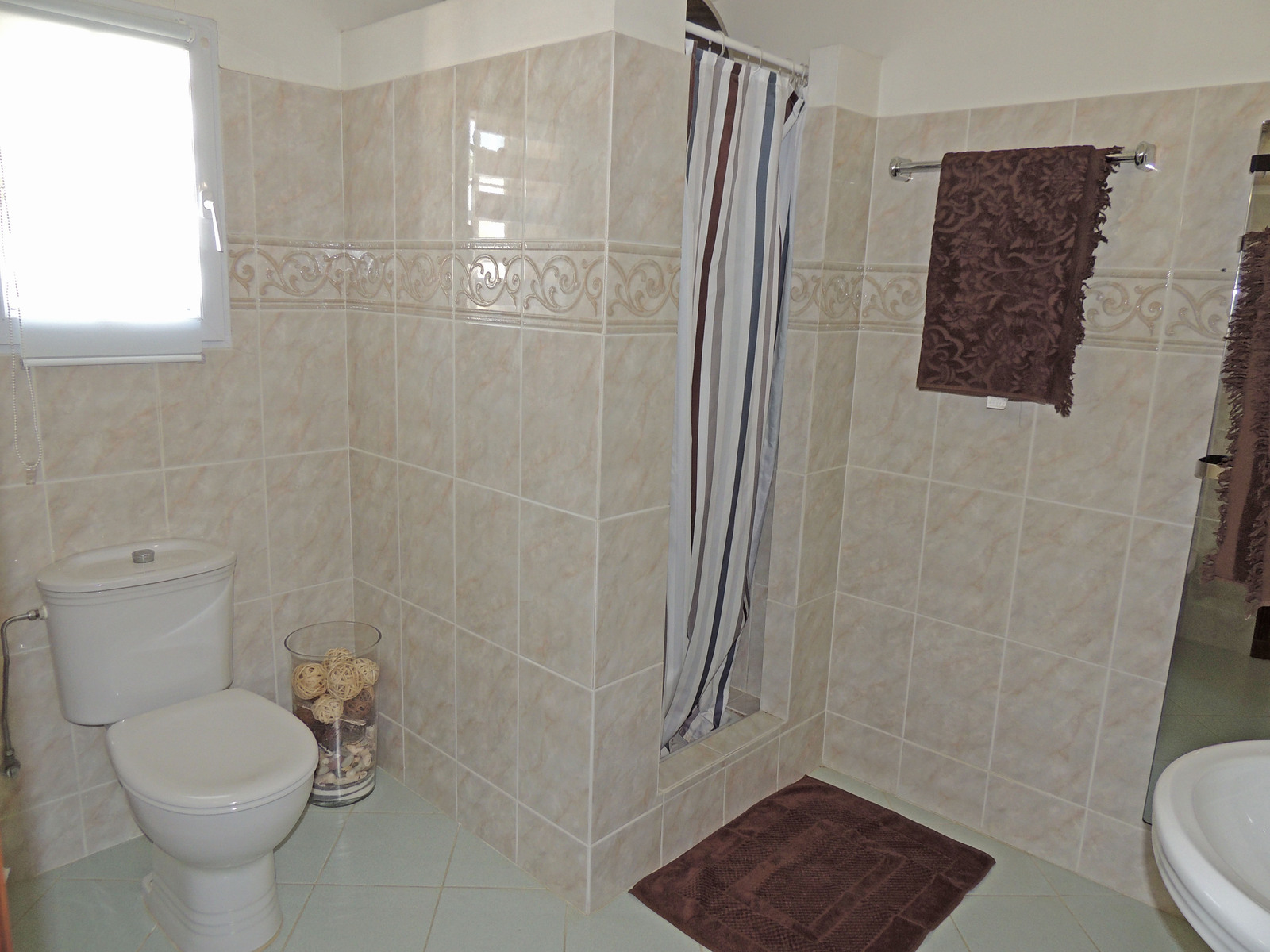 The guest room, also air-conditioned, has two 90 cm beds that can be moved closer together to make a 160 cm bed and has a television. The air-conditioned children's room has 2 bunk beds (90 cm) and a flat screen TV. These two rooms share a shower room and an independent toilet.