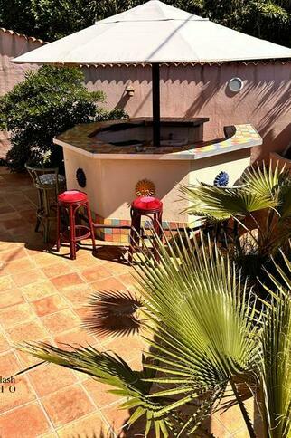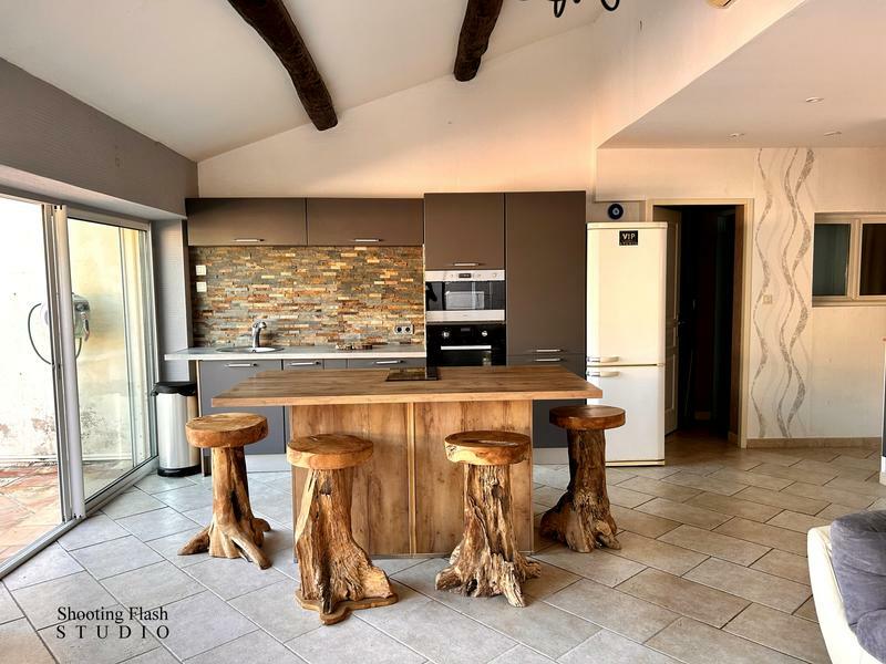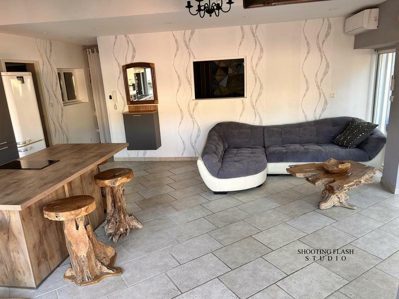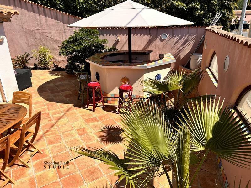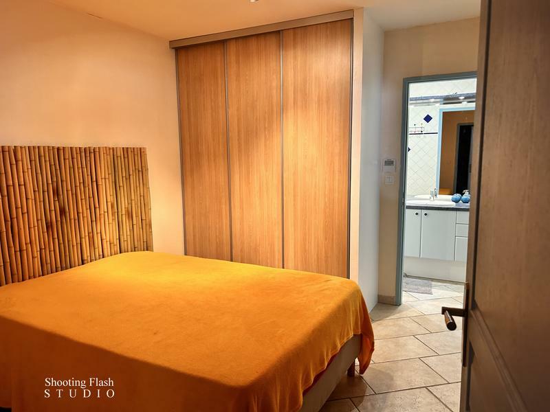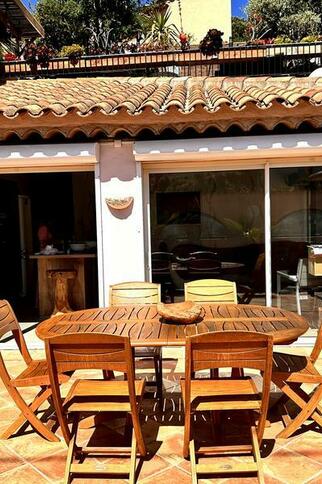 The 83m2 apartment has a 70 m2 enclosed outdoor terrace with a spa hut - wifi and office equipment, baby cot available on request or extra bed for children, pets welcome and direct access to Canadel beach, the famous Tropicana beach.