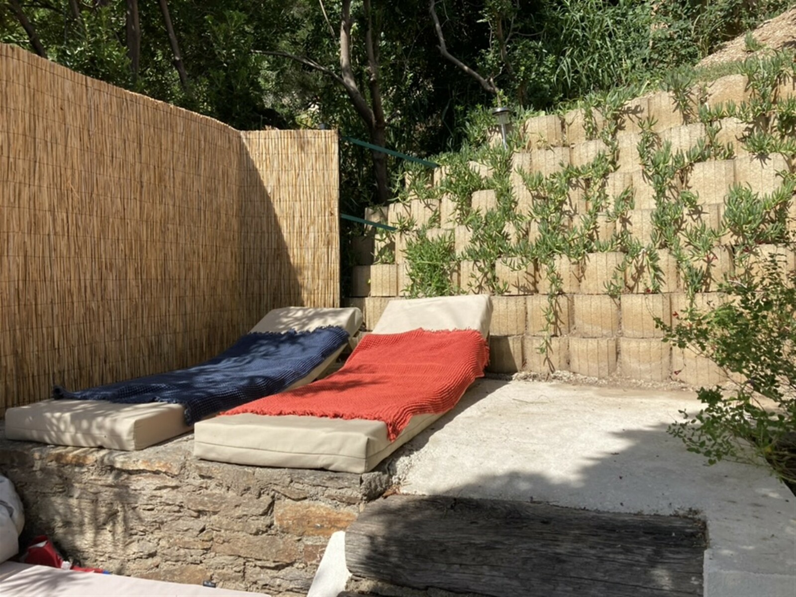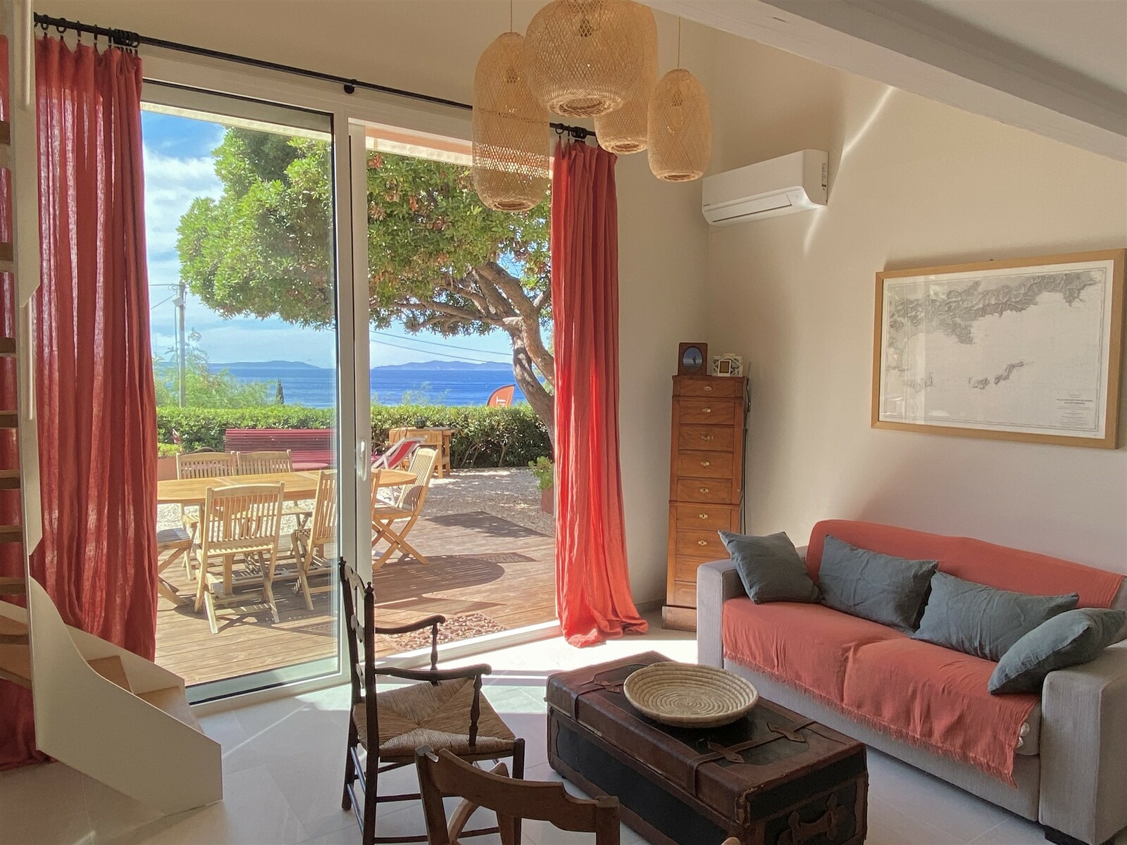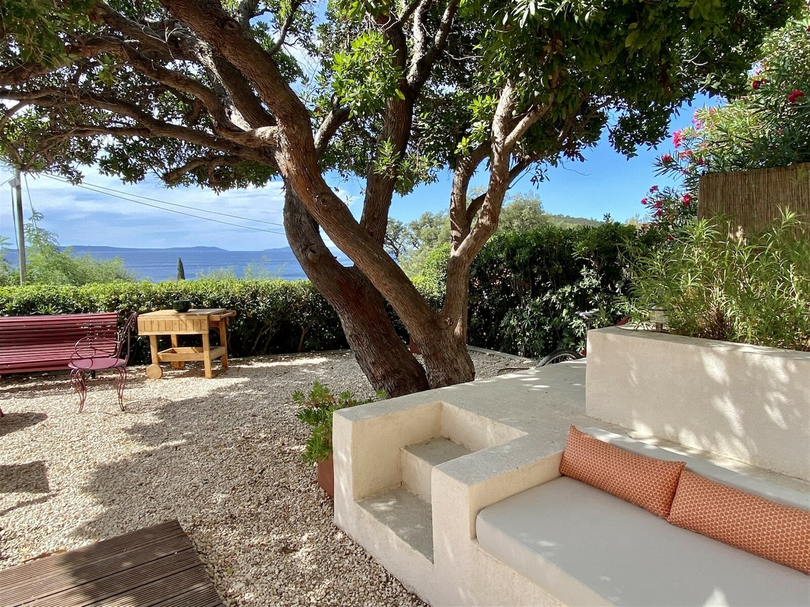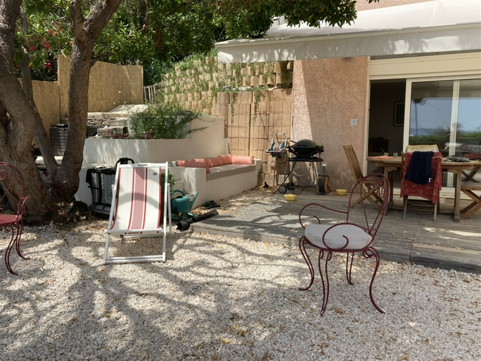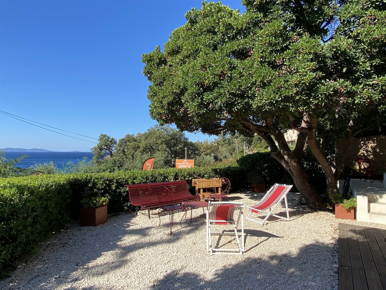 85m2 duplex apartment with garden (like a house), magnificent sea view over the Illes d'Or at the foot of the Toulon / St Raphaël cycle path and 10' from the Canadel and Pramousquier beaches.