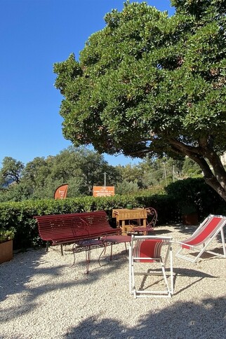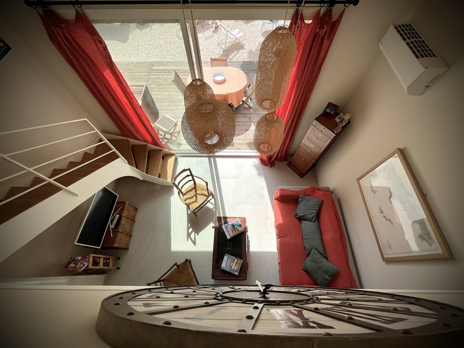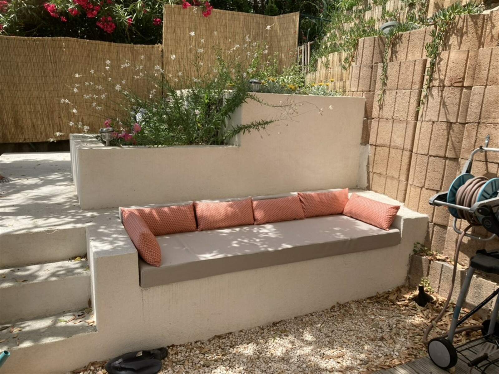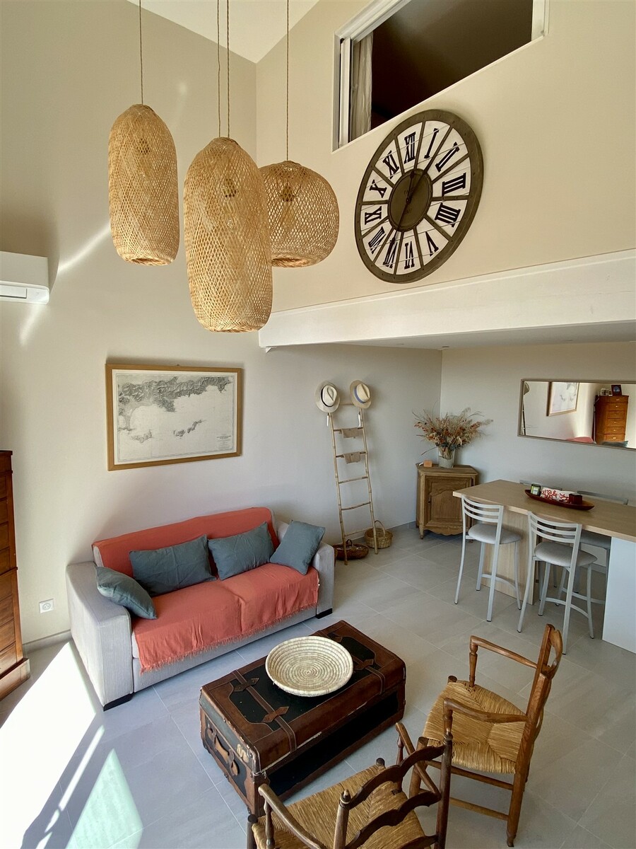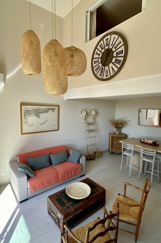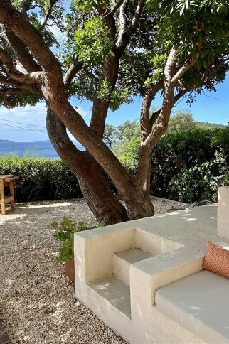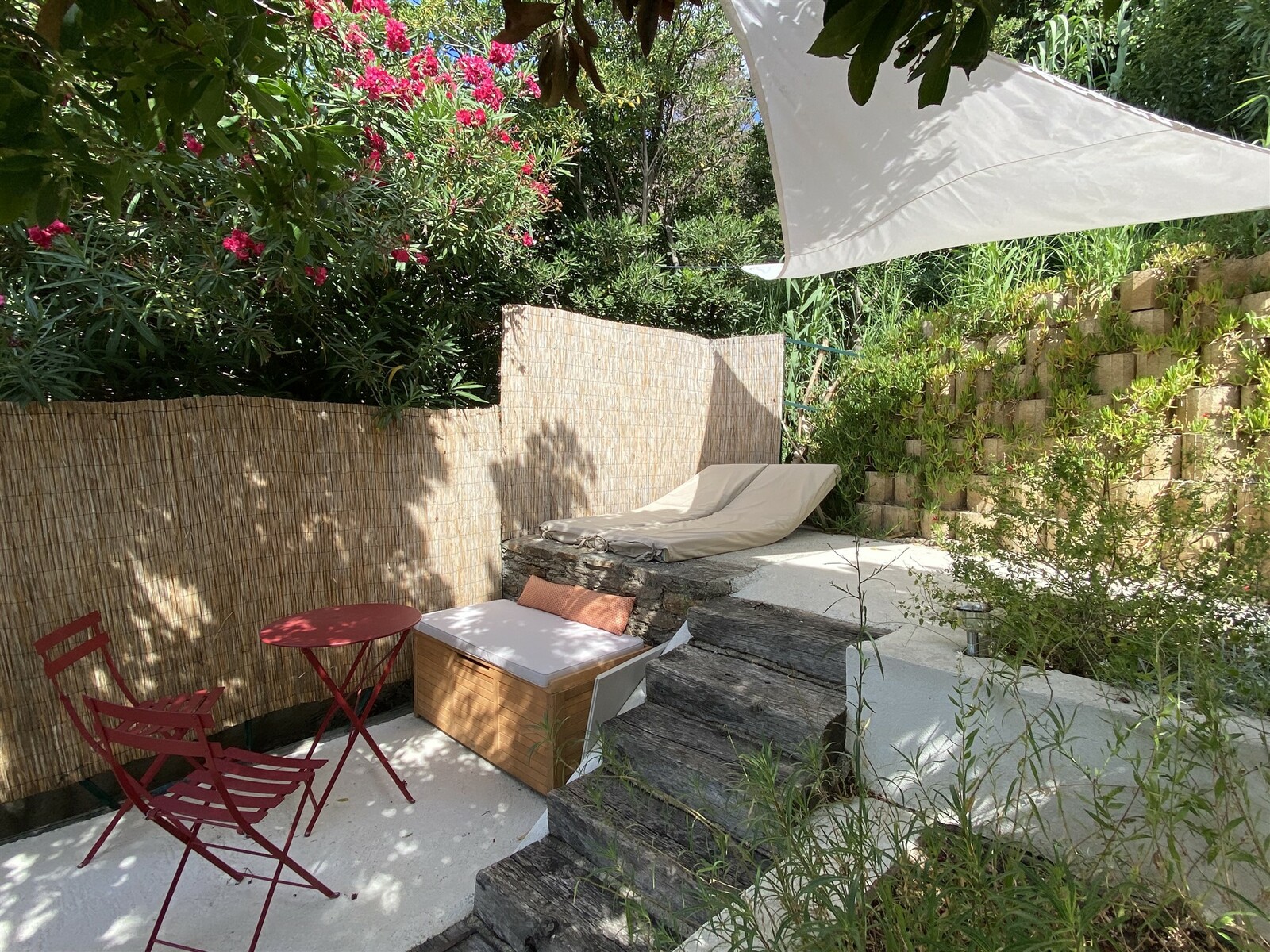 85m2 duplex apartment with garden (like a house), magnificent sea view over the Illes d'Or at the foot of the Toulon / St Raphaël cycle path and 10' from the Canadel and Pramousquier beaches.