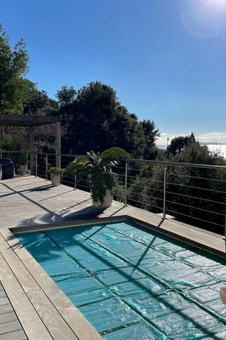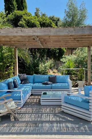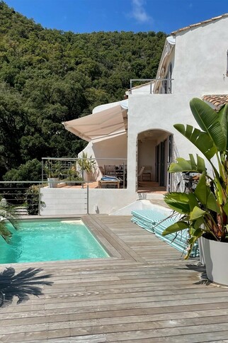 Pleasant farmhouse with lovely terrace, pool and sea view.