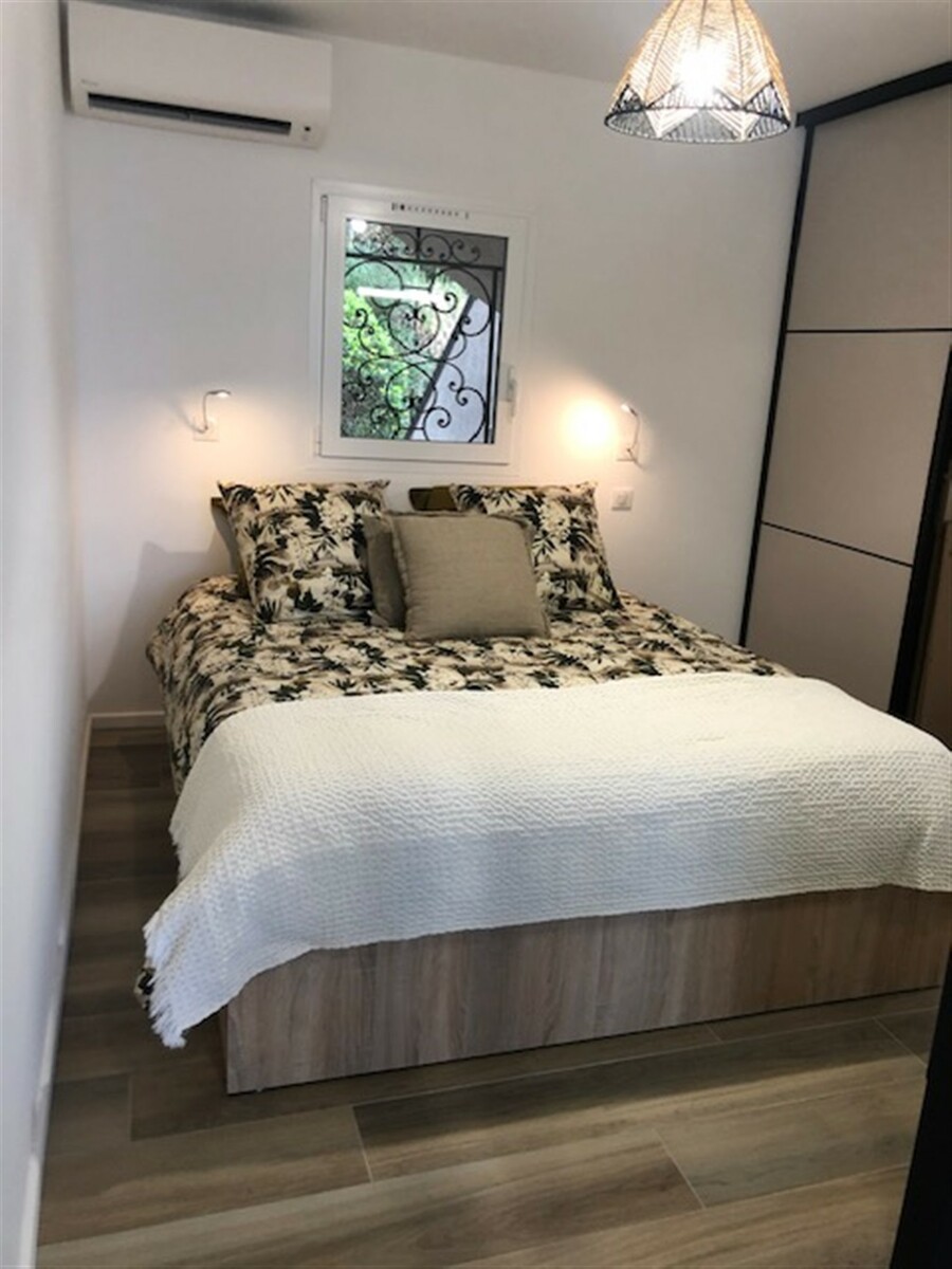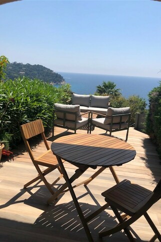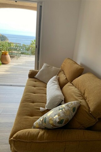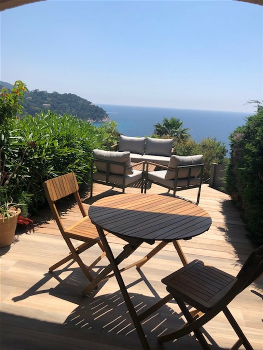 In a quiet residence, lovely 30 m2 sea-view apartment, fully renovated, all comforts, furnished terrace, communal pool, 200 m from Canadel beaches and restaurants.