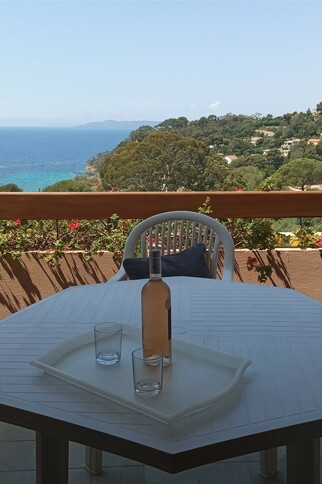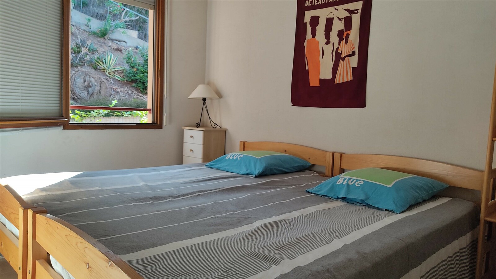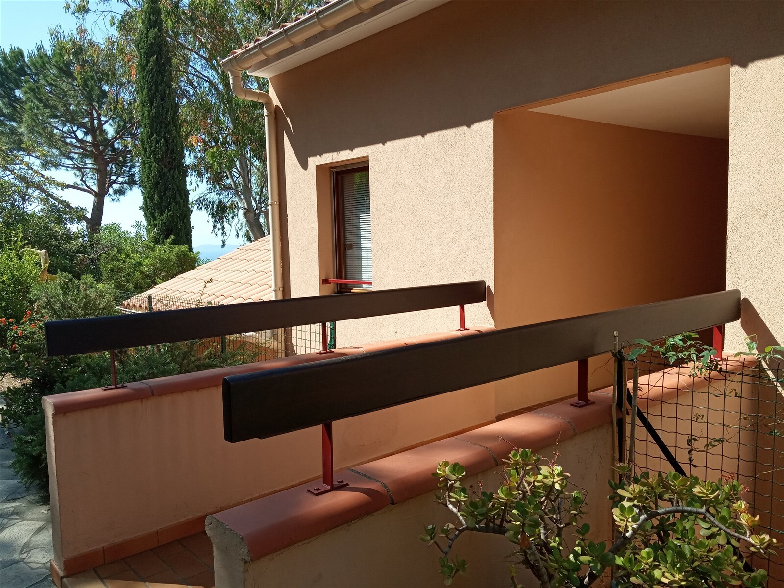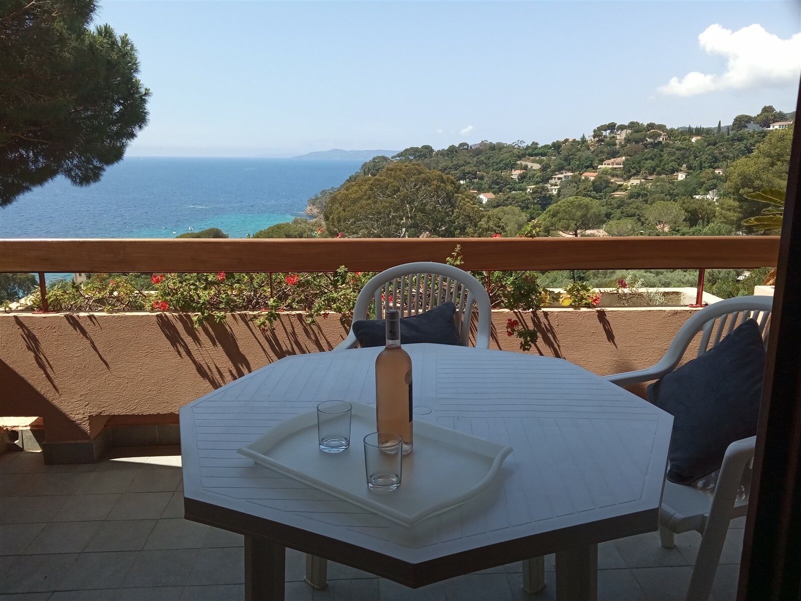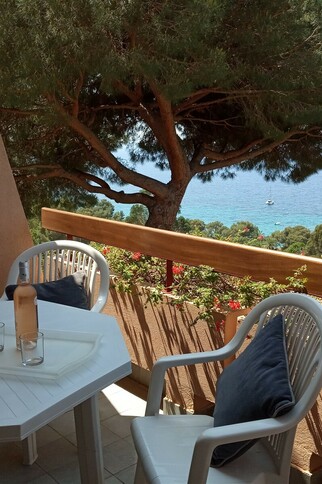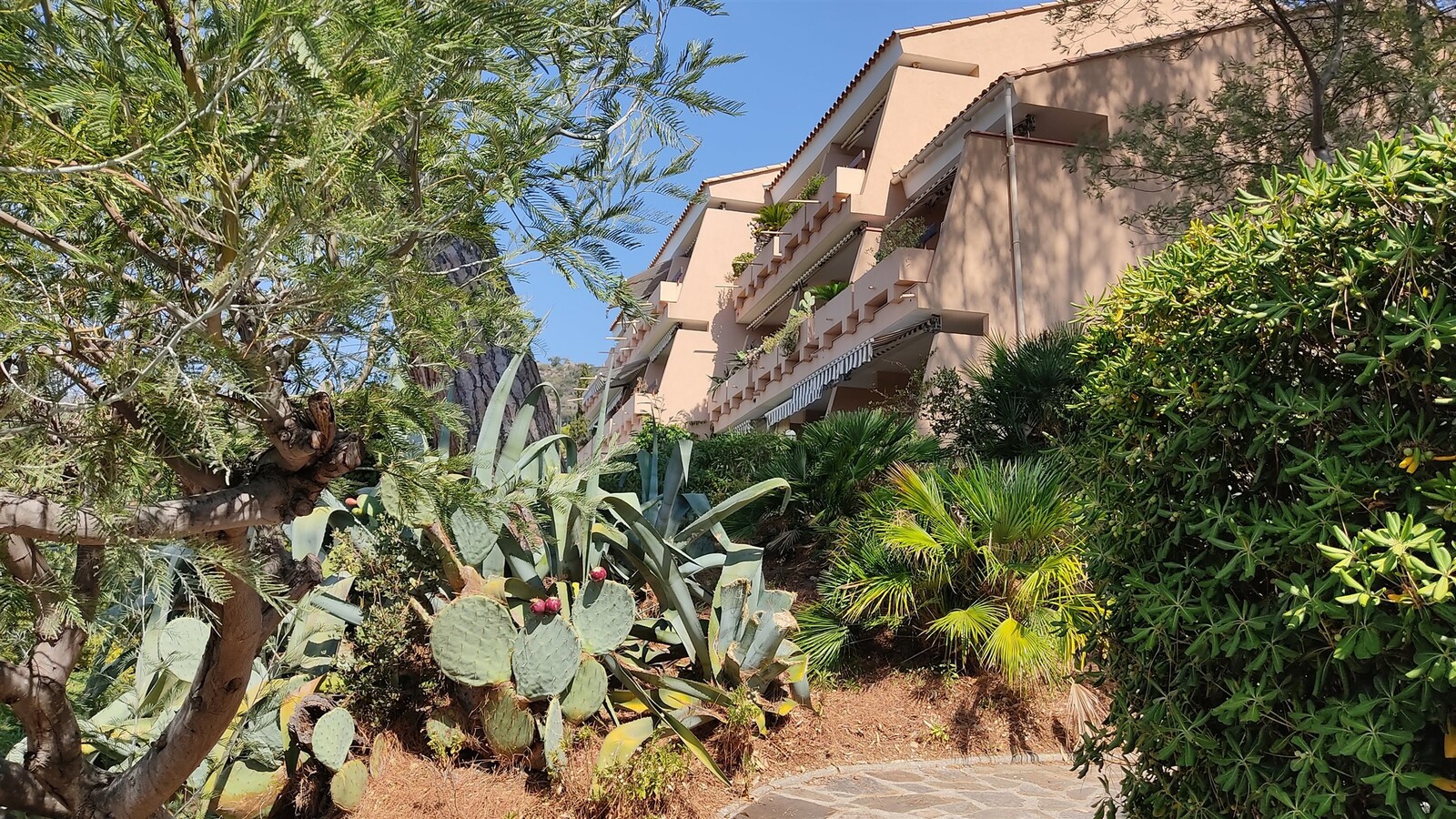 Pleasant 60 m2 T3 apartment in a small, intimate condominium, surrounded by 7,000 m2 of Mediterranean parkland. Its terrace offers a magnificent view of the Golden Isles, and its proximity to the sea (400m on foot) and shops (100m) make it an ideal vacation spot.