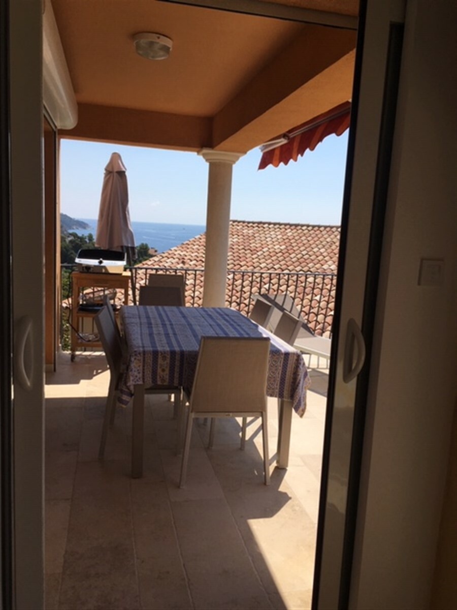 The balcony loggia of 20m2 offers a thousand possibilities of lunch facing the sea, a terrace of 60m2 and a wooded garden encourage idleness the eye constantly attracted by the immense blue mass. The Villa offers comfort and freshness.Possibility of three parking spaces.