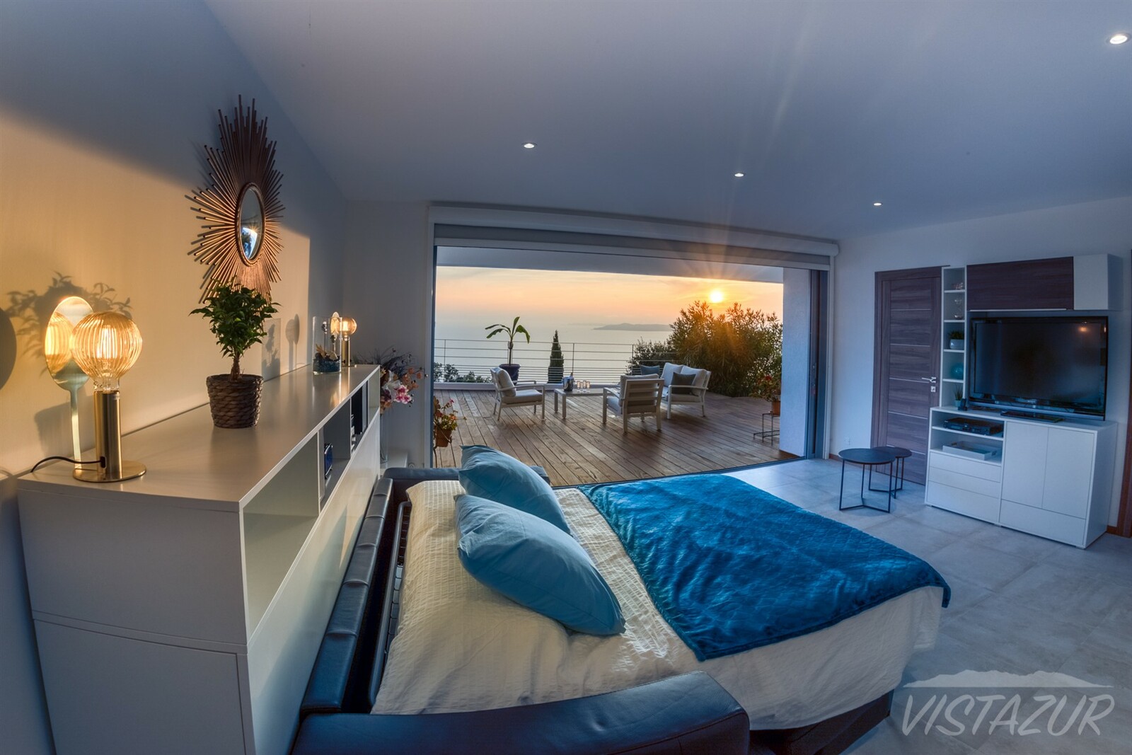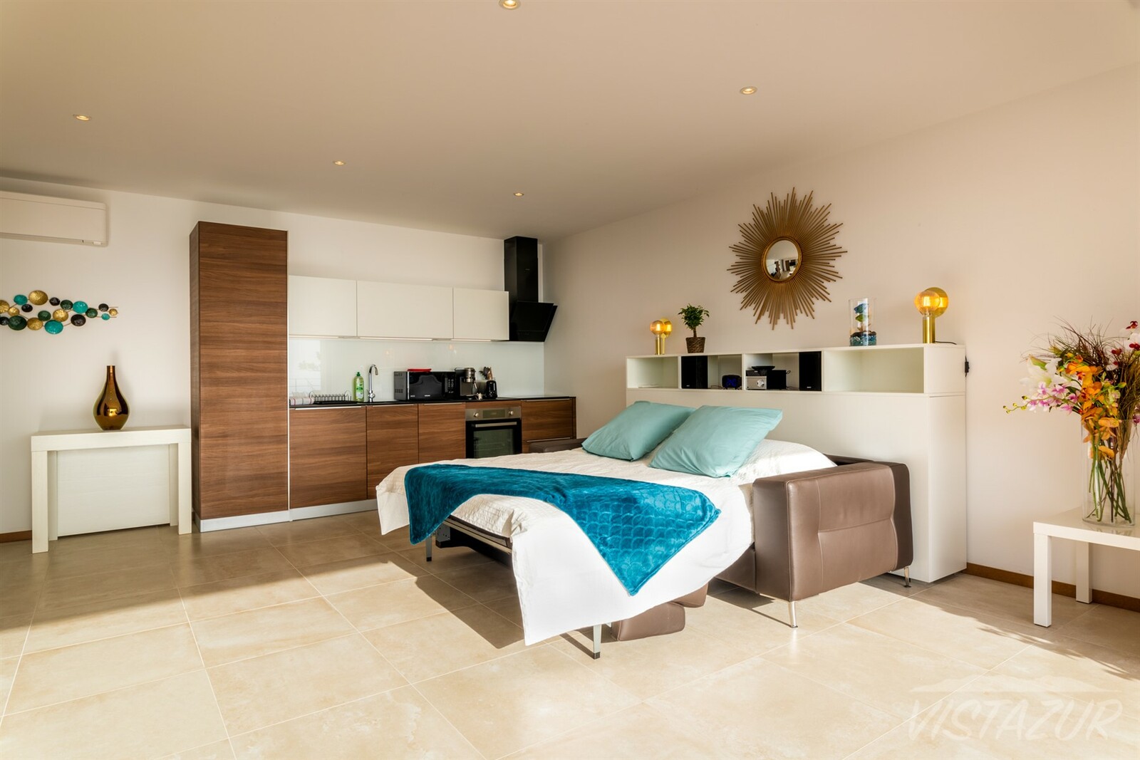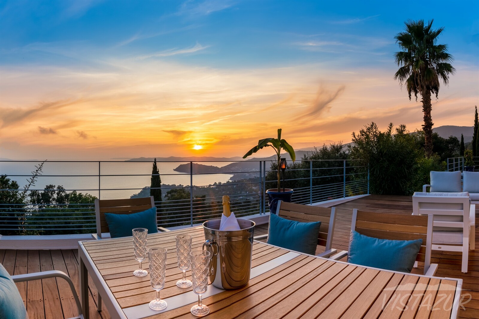 Welcome to our home!You are our unique guests, on the heights of the village 800 m from the center, in a luxurious studio for 2 (38 m ²) or apartment for 2 to 4 people (60 m ²) on the first floor of our villa in a magnificent park. An 86 m² terrace and loggia with panoramic views of the Mediterranean and the Golden Islands, plus a superb swimming pool, are dedicated to you!