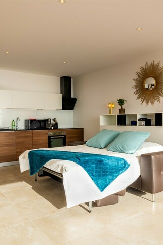 You are our unique guests, 800 m from the center, in a luxurious apartment for 2 or 4 people (60 m²). A terrace (86 m²) with panoramic views of the Mediterranean and the Golden Islands, and a superb swimming pool are entirely dedicated to you!