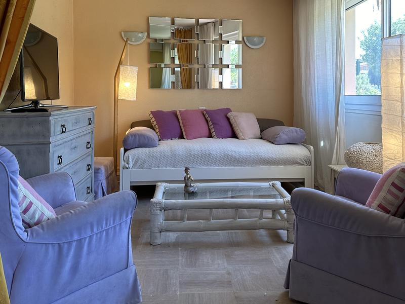 Comfortable flat with 1 open-plan kitchen/living room, 2 bedrooms (1 with en suite bathroom), shower room, laundry room and 2 outdoor parking spaces in a secure residence with direct access to the beach.