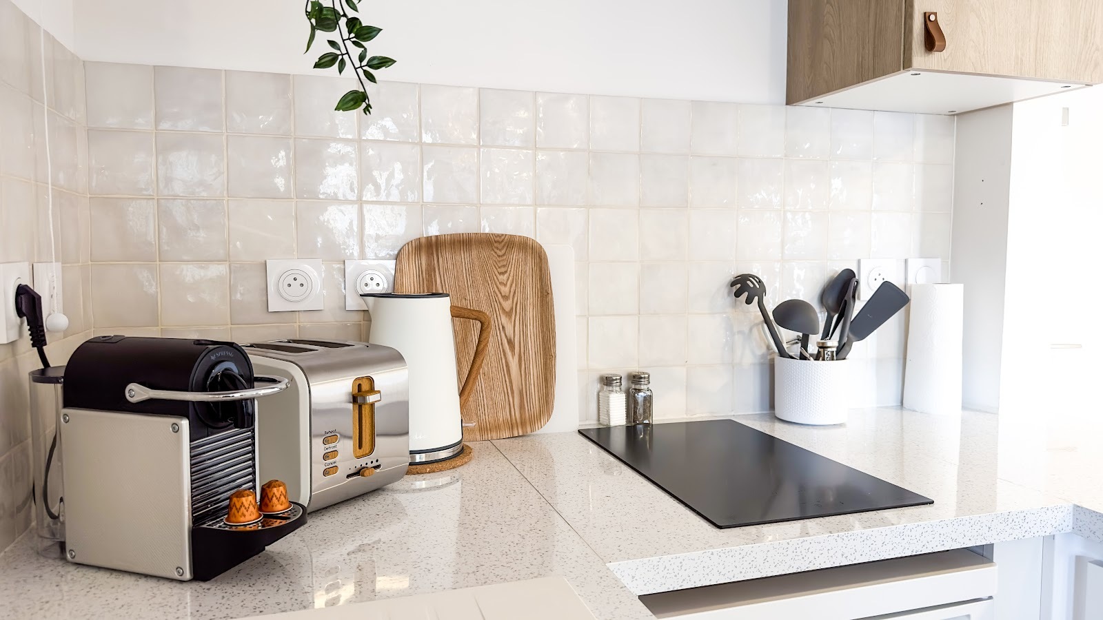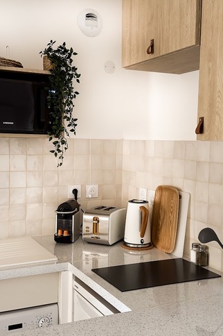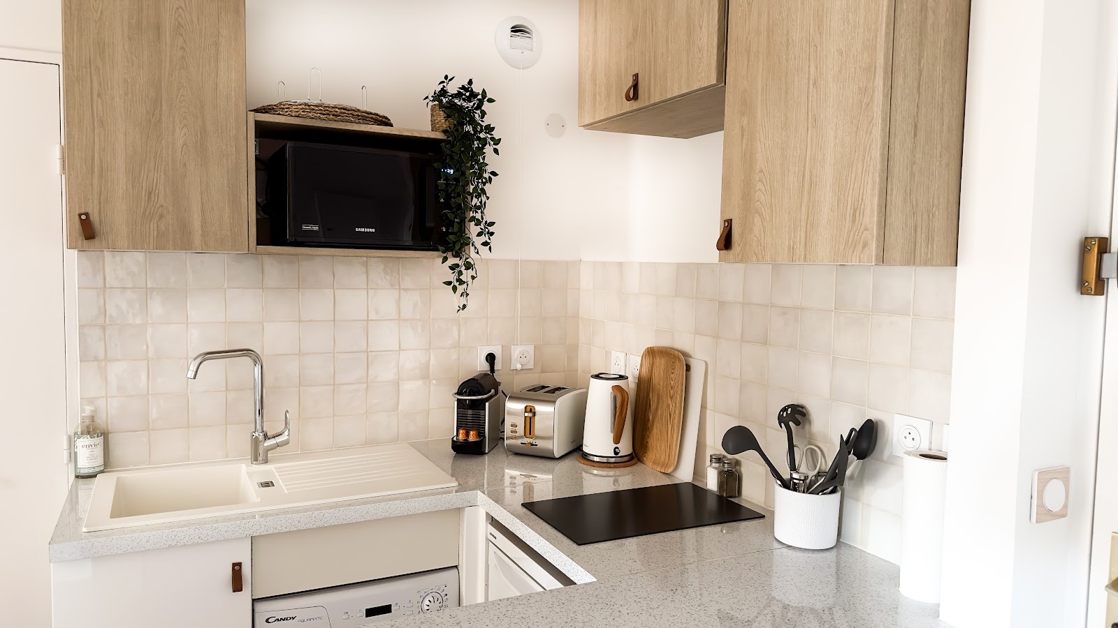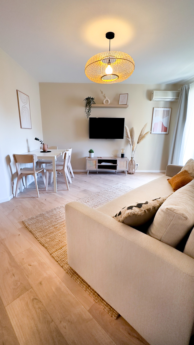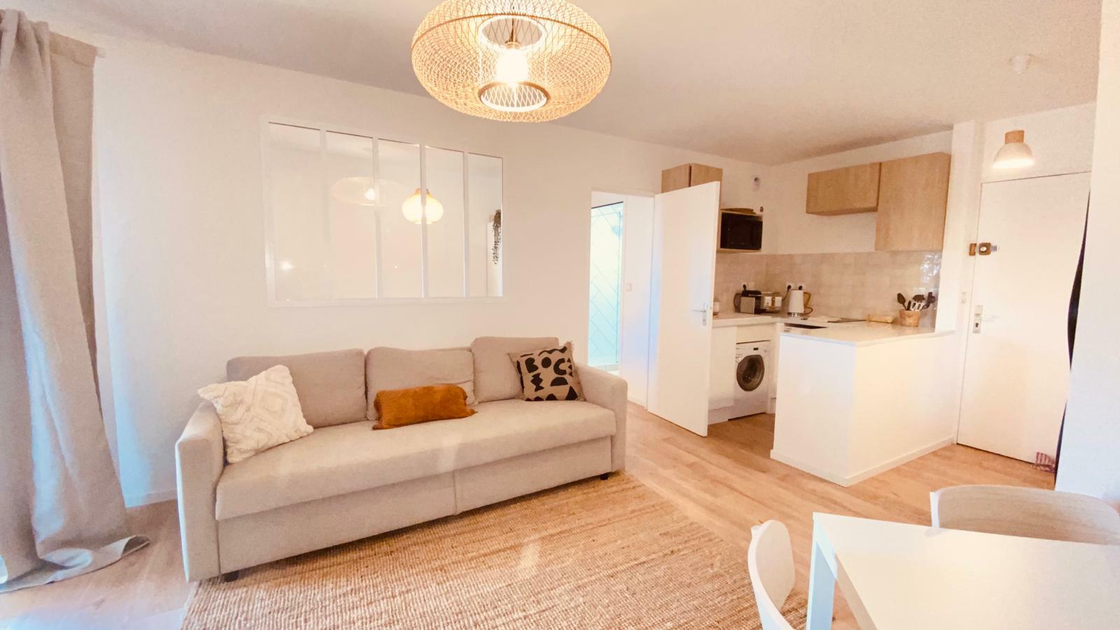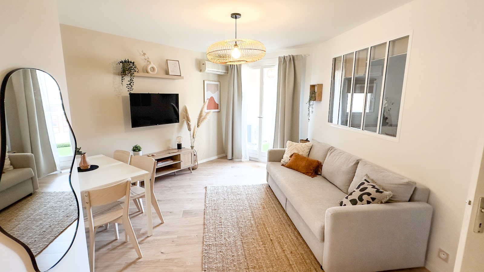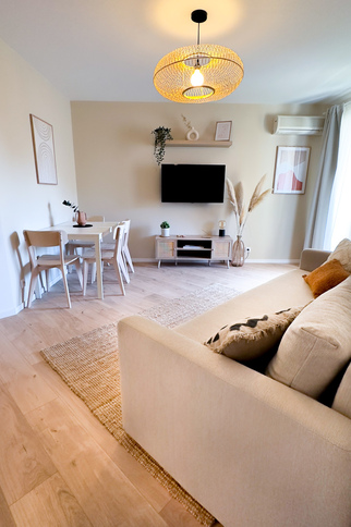The Terracotta is situated in the center of Sainte Maxime on the second story of a gated building with an elevator, facing a sizable inner courtyard with gardens and terraces, away from the bustle of the city.Renovated entirely in 2023, the Sainte-Maxime tourism office has rated this flat a three-star establishment. You'll be pleased by its stylish and modern décor.