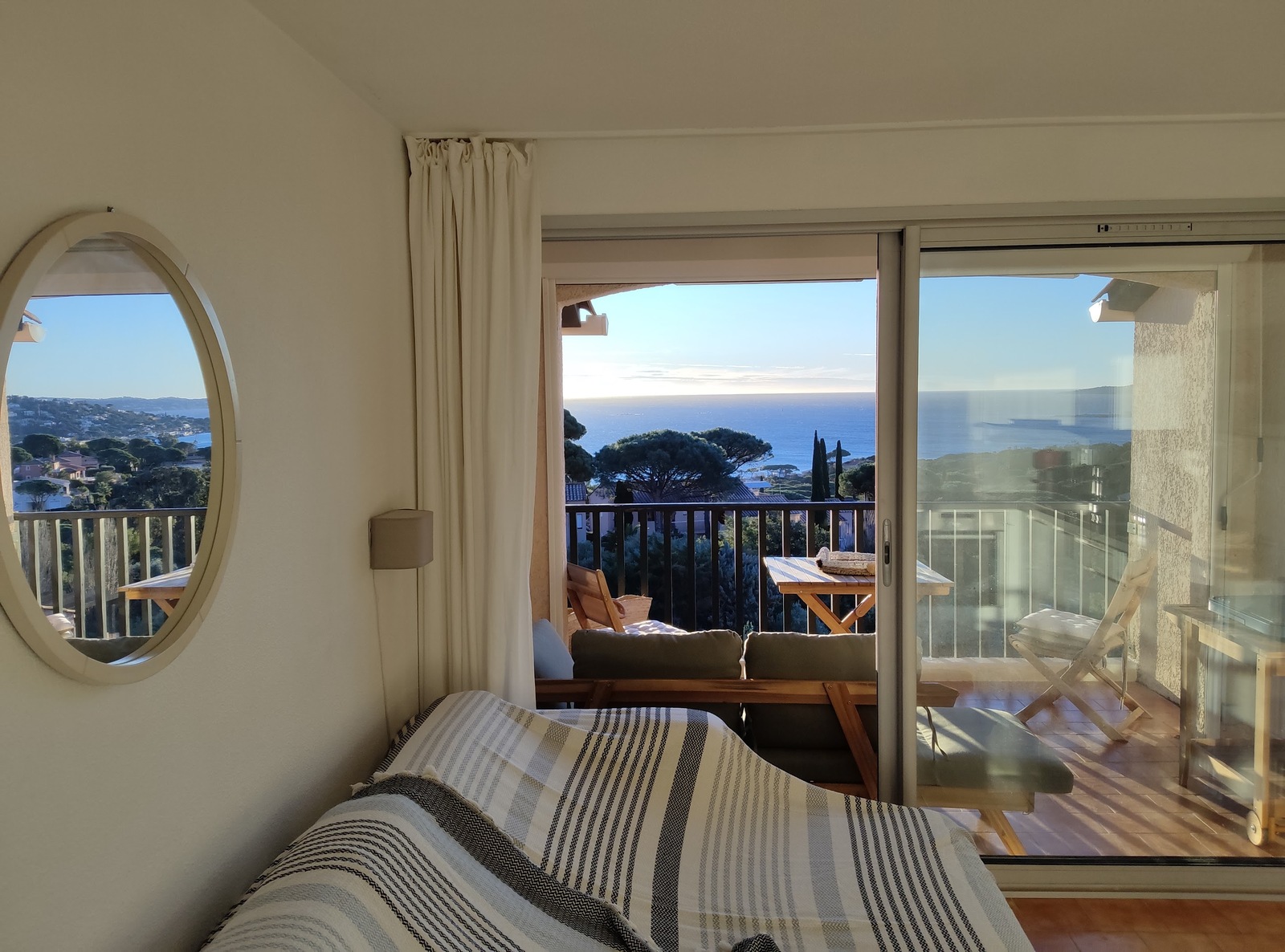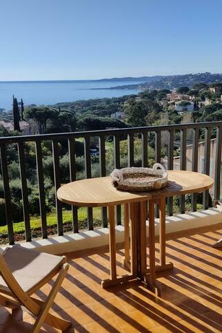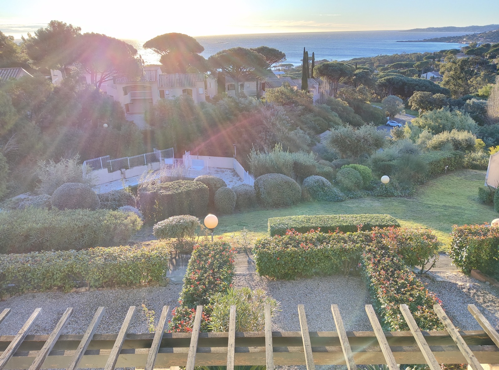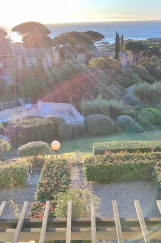 Located in Sainte Maxime, the accommodation offers an exceptional view of the sea in a park of several hectares full of flowers and tranquility, with a swimming pool and deckchairs.