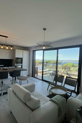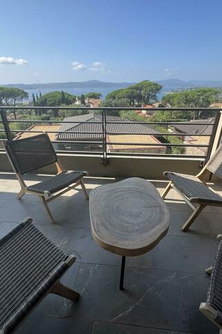 In Sainte-Maxime, in the residential neighbourhood of Sémaphore, beautiful apartment for 4 people for rent, located on the first and top floor of a new residence.It offers a superb view of the sea and the Golfe de Saint-Tropez.