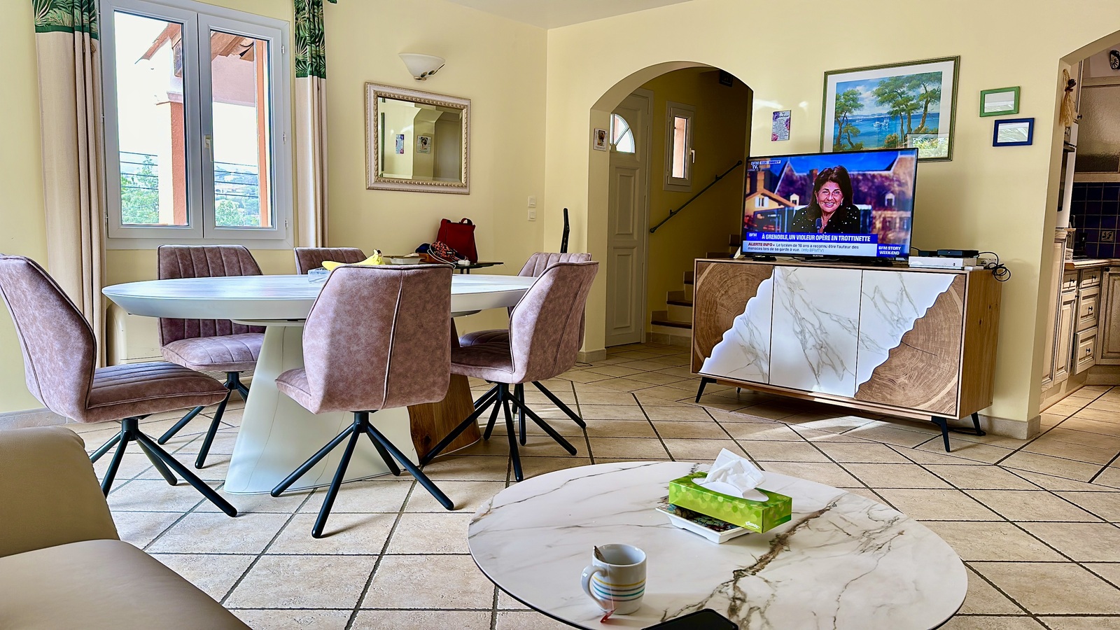 Welcome to our quaint villa, which is tucked away in Sainte-Maxime's exclusive Sémaphore district. This serene haven provides the perfect setting for a calm and floral vacation. The magnificent expansive views of the Mediterranean Sea are one of the neighborhood's most well-known features.Our home has all the contemporary conveniences you require and radiates a cosy environment. The living areas have simple yet sophisticated décor and are intended for leisure and social interaction. Thanks to recent renovations, we have successfully incorporated Provençal design in the kitchen and bathroom while giving the rest of the house a more contemporary feel.