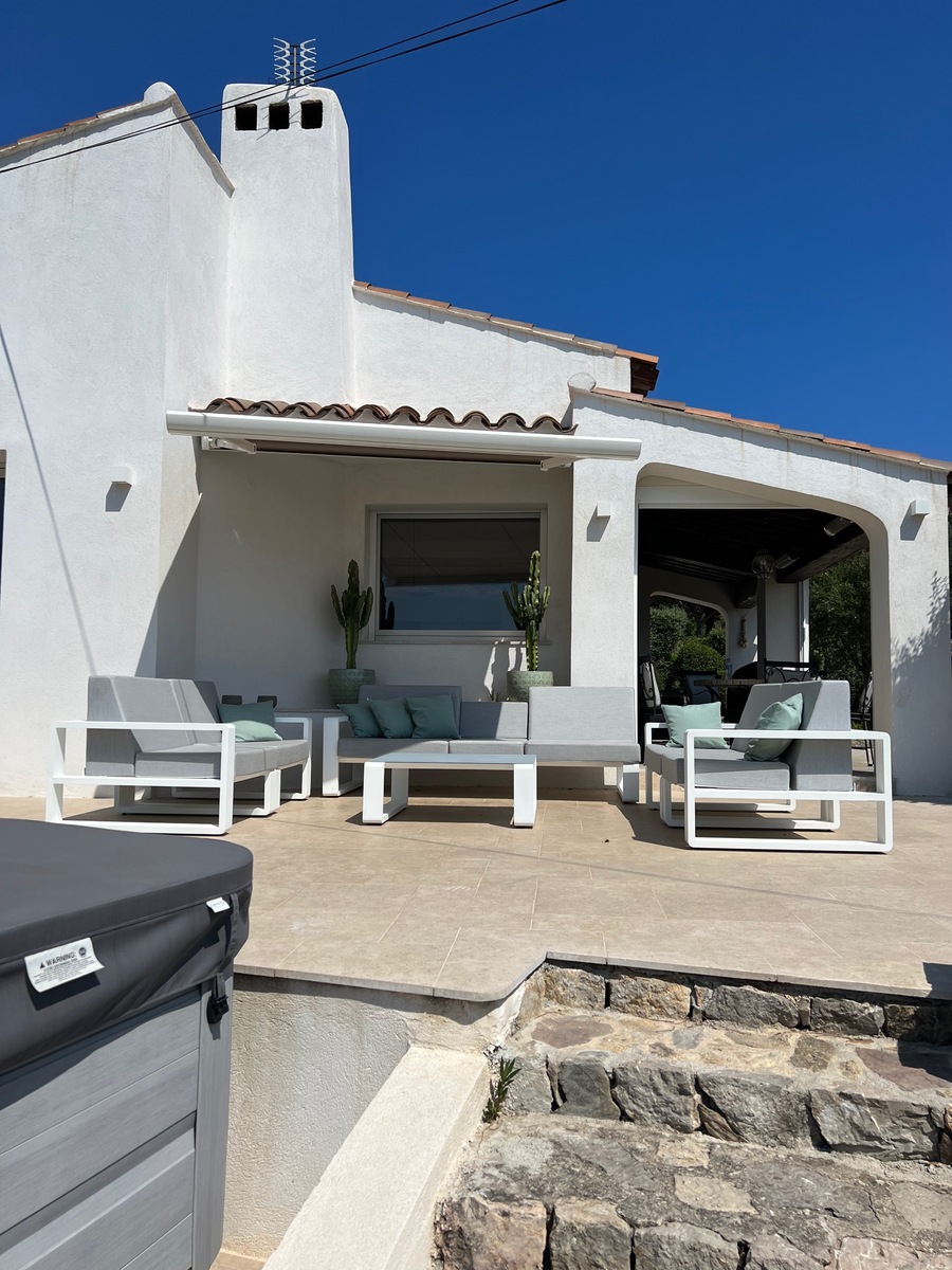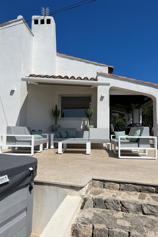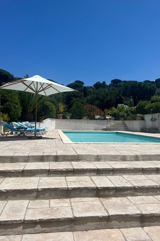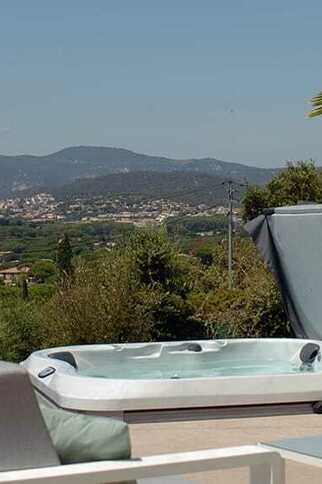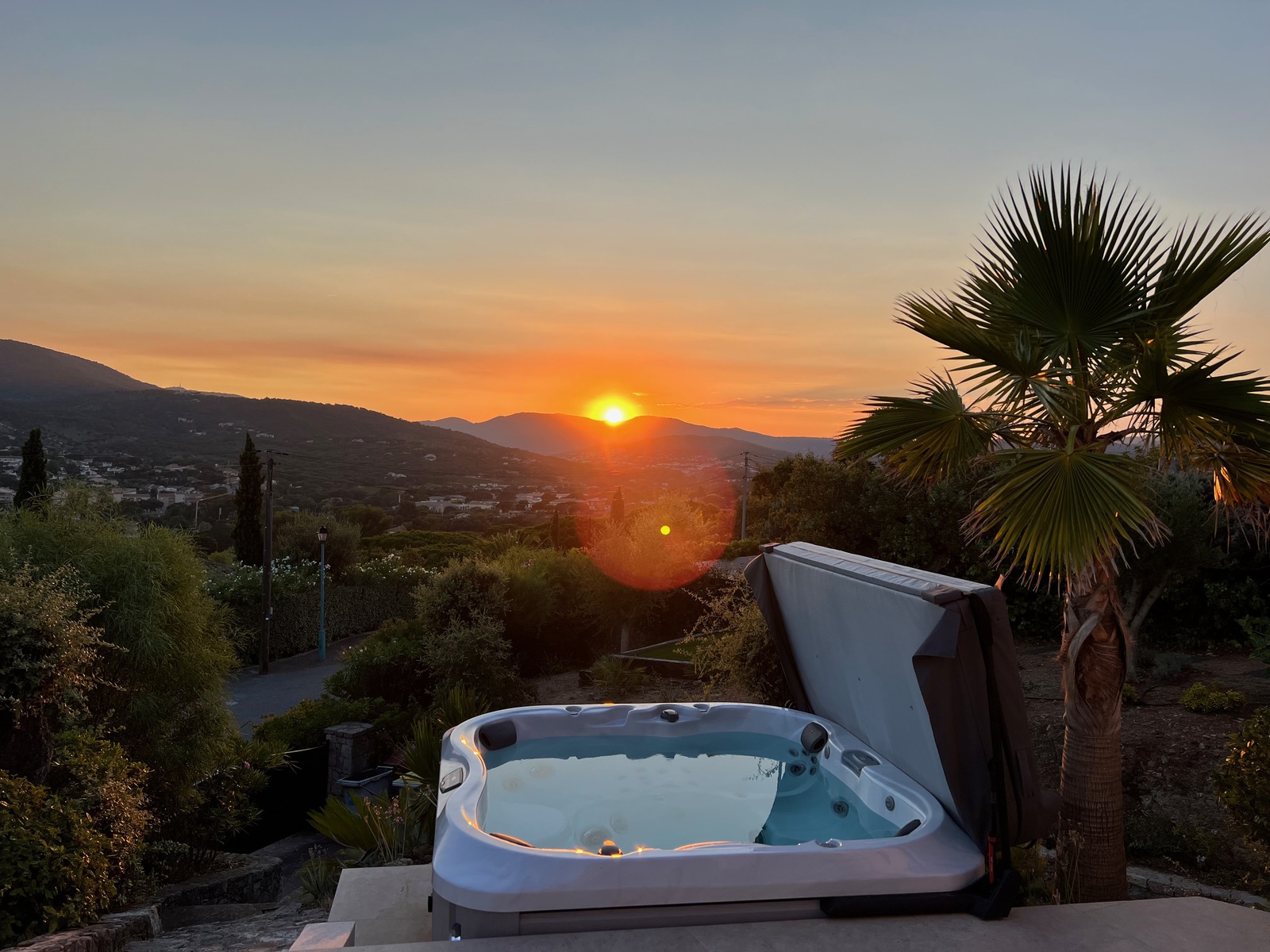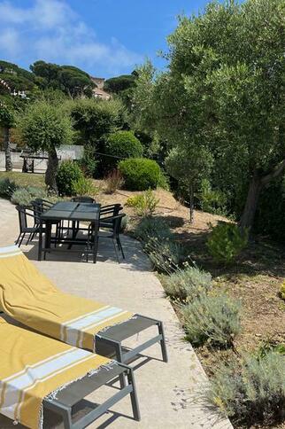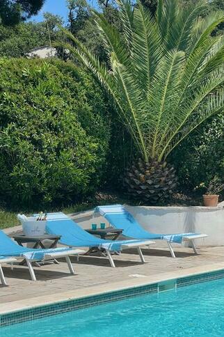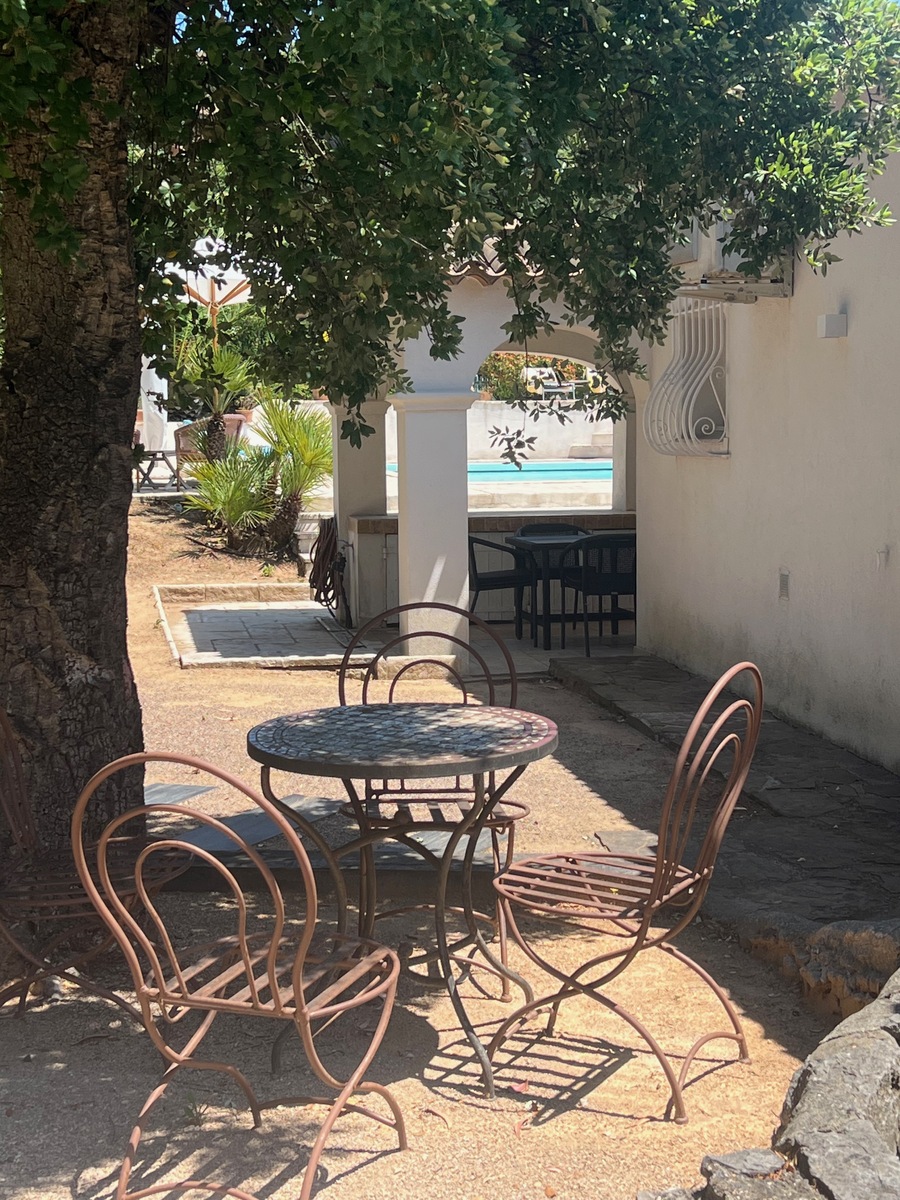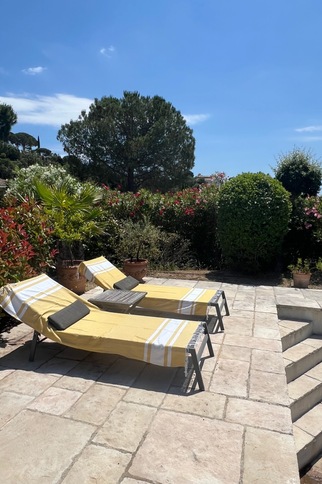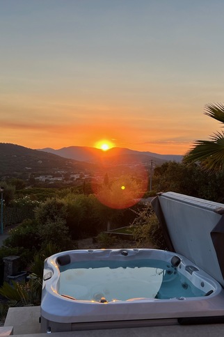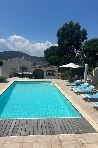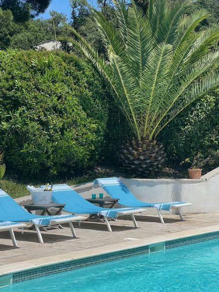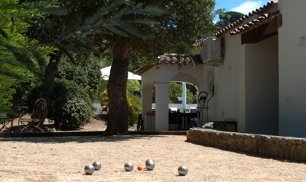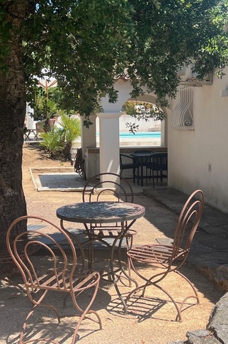The jacuzzi and the outdoor fitness area are at the front. The pétanque court is on the north side and the pool (5 x 10 m) is at the back of the house. There are sun loungers, seating, parasols, an outdoor shower and a ping pong table. There is easy access to the toilet. The pool is shallow at one end and deep at the other. Out of season, it is possible to heat the pool (approx. €12 a day).