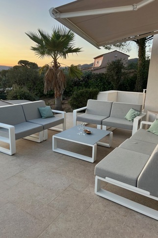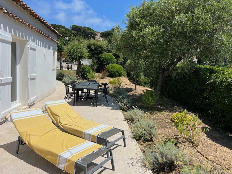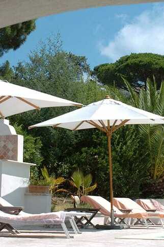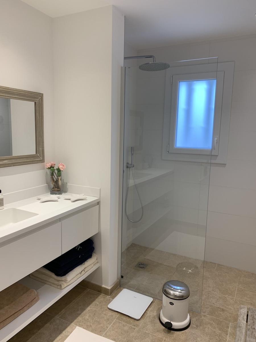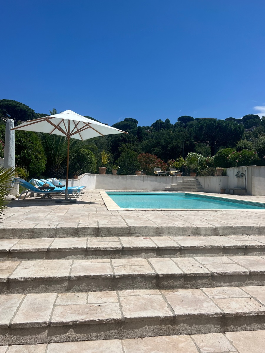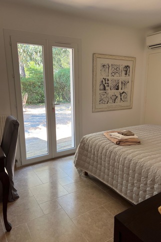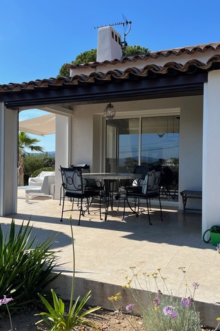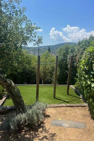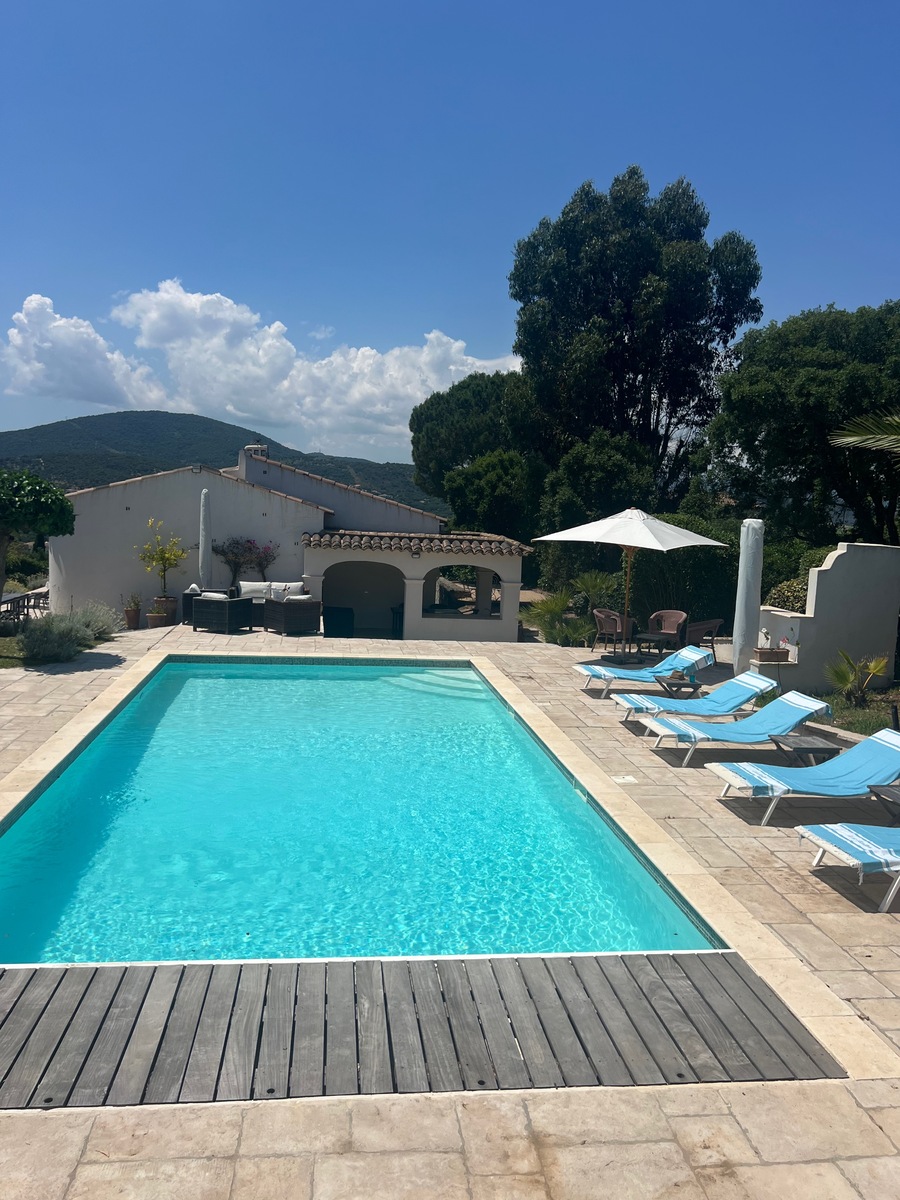 The jacuzzi and the outdoor fitness area are at the front. The pétanque court is on the north side and the pool (5 x 10 m) is at the back of the house. There are sun loungers, seating, parasols, an outdoor shower and a ping pong table. There is easy access to the toilet. The pool is shallow at one end and deep at the other. Out of season, it is possible to heat the pool (approx. €12 a day).