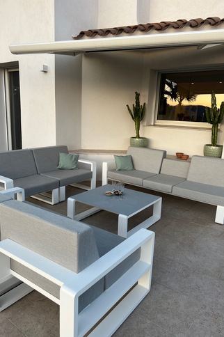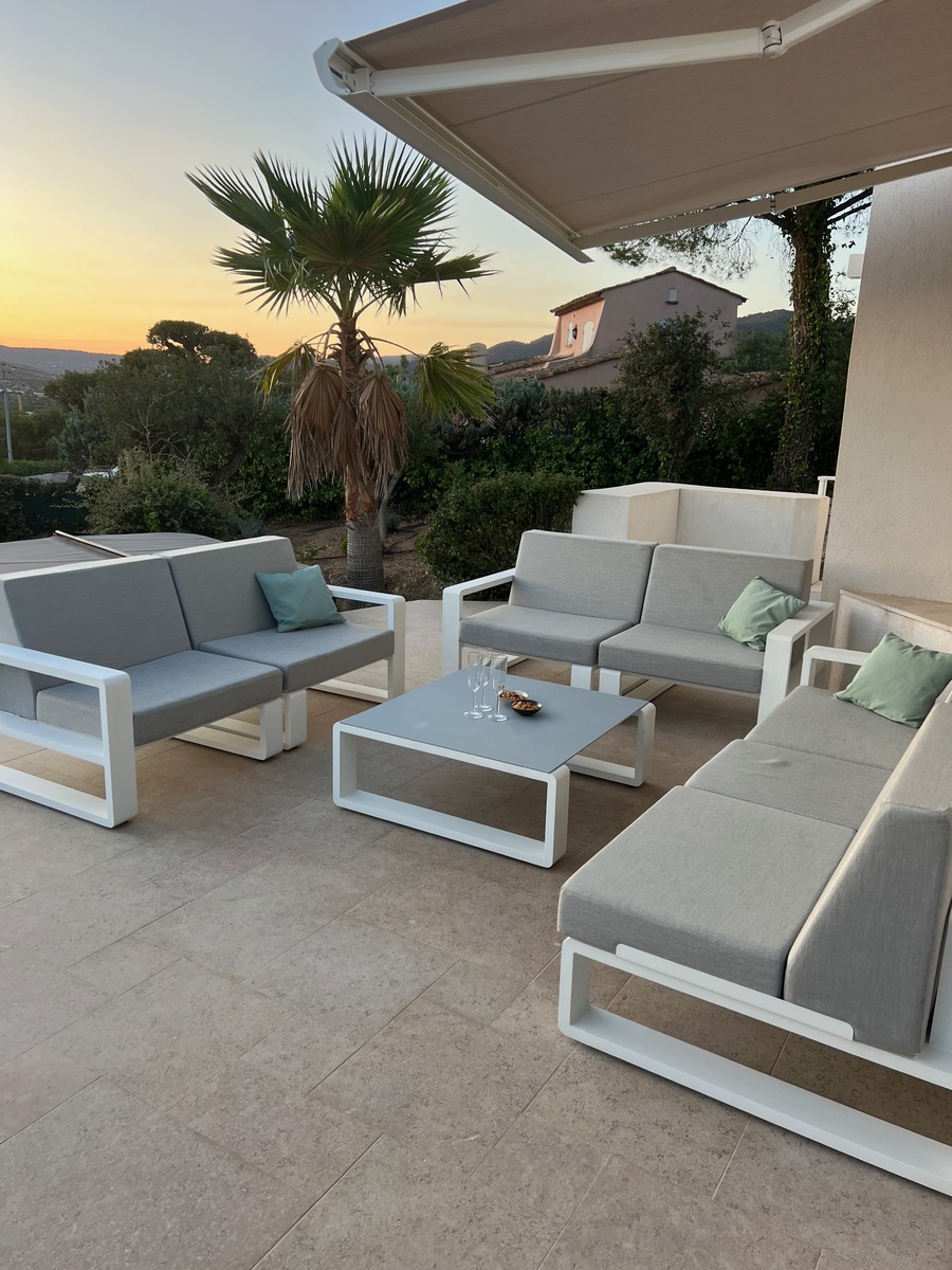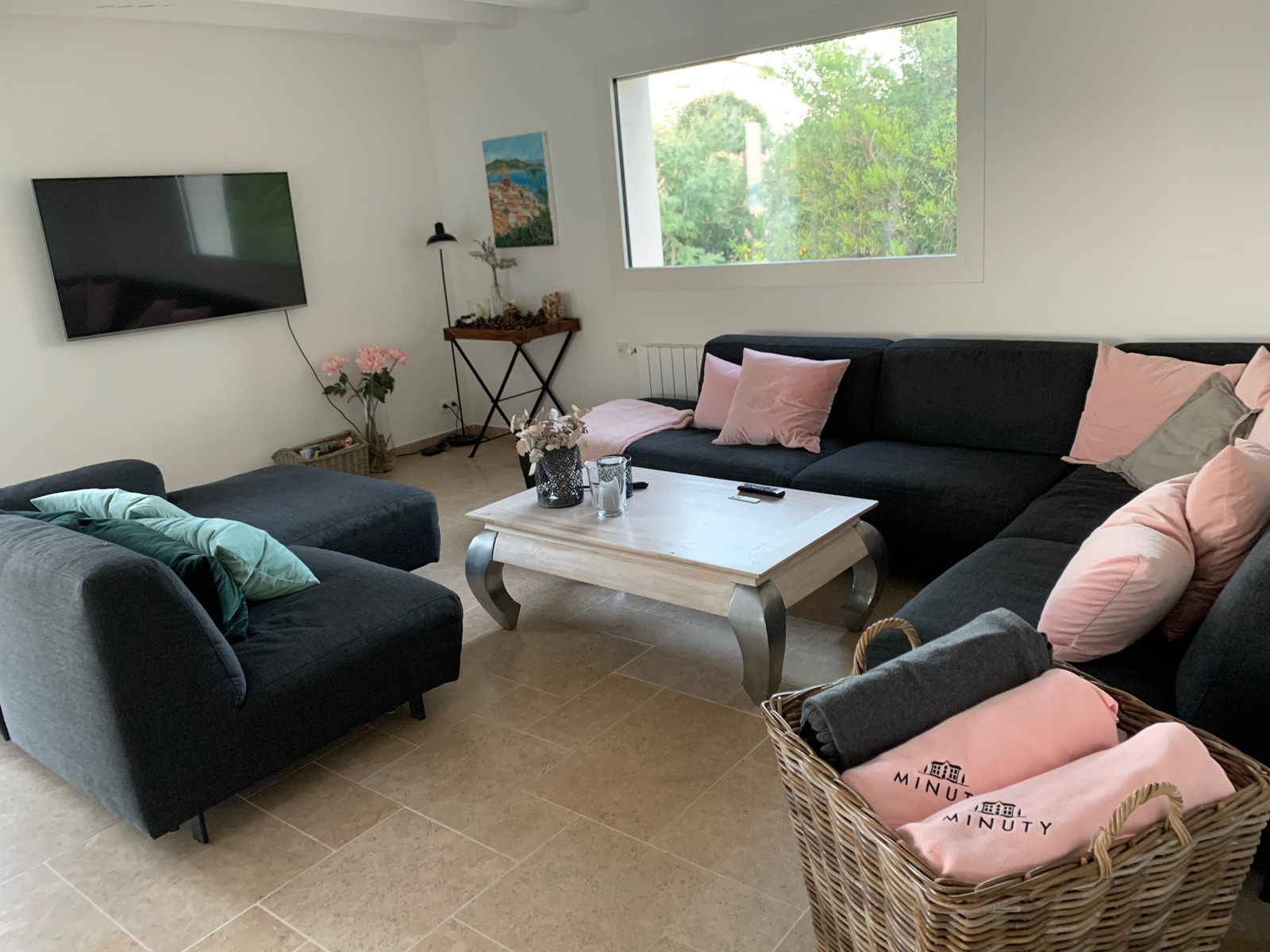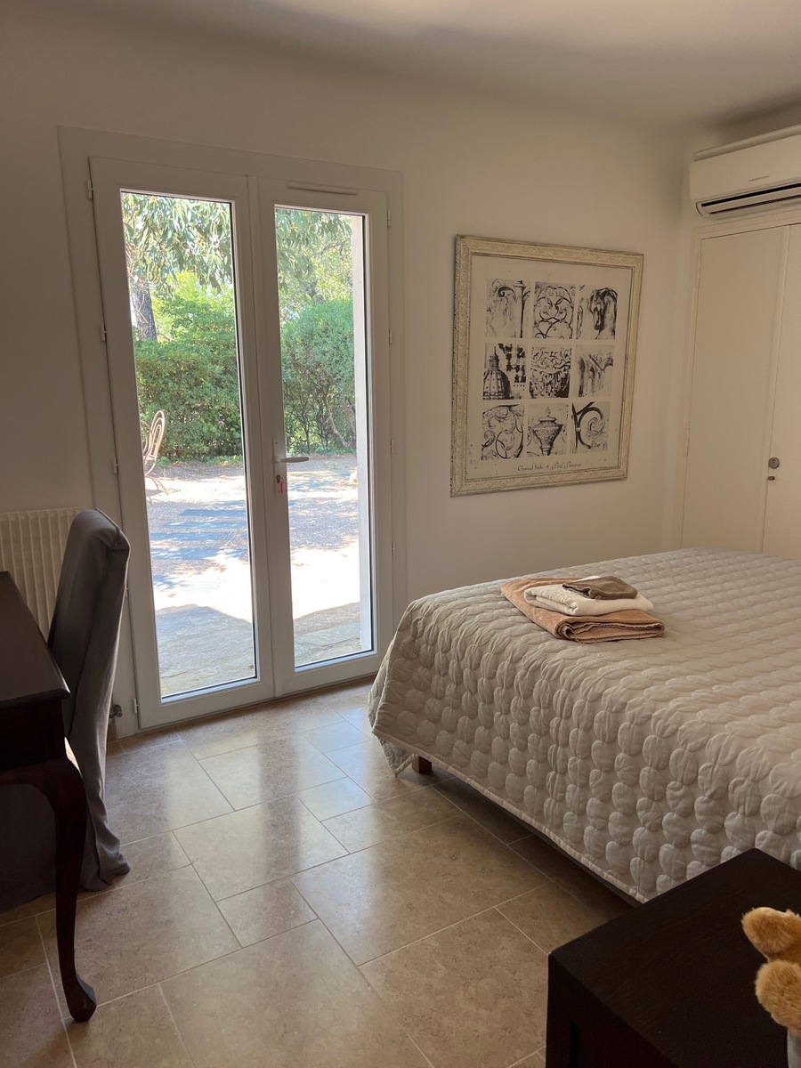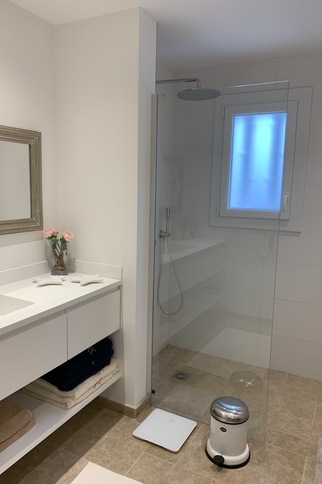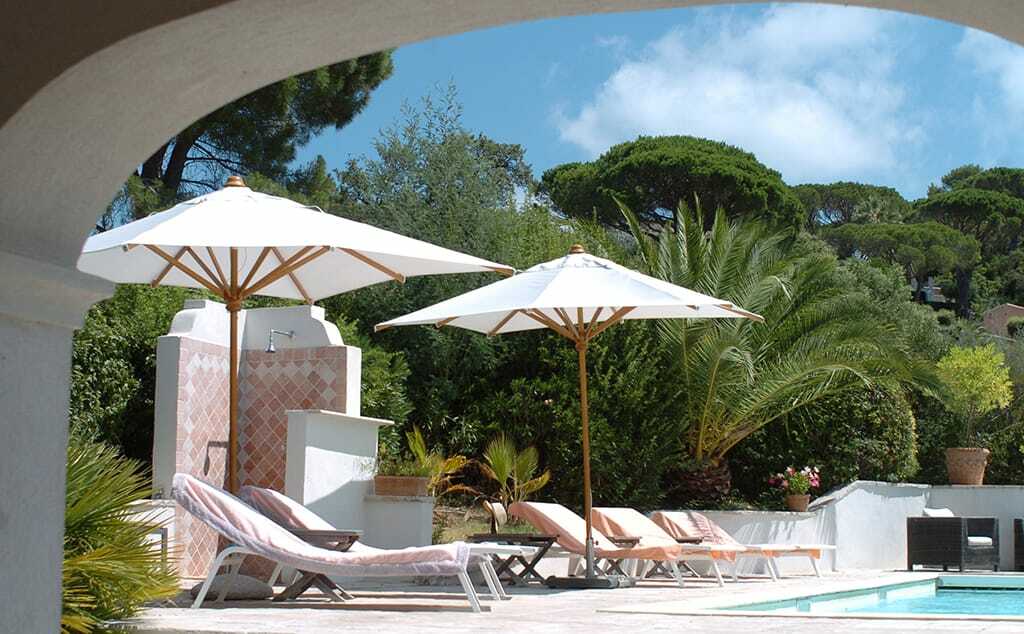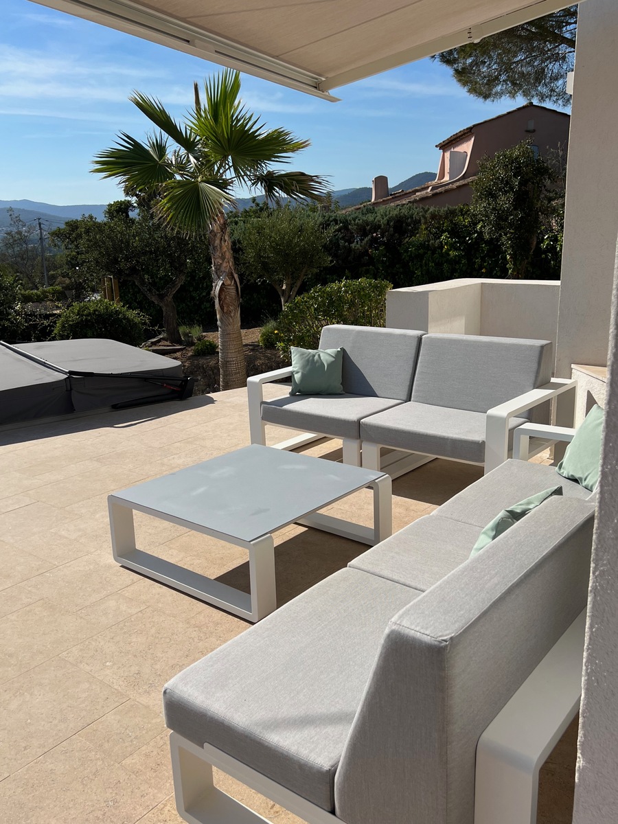 The jacuzzi and the outdoor fitness area are at the front. The pétanque court is on the north side and the pool (5 x 10 m) is at the back of the house. There are sun loungers, seating, parasols, an outdoor shower and a ping pong table. There is easy access to the toilet. The pool is shallow at one end and deep at the other. Out of season, it is possible to heat the pool (approx. €12 a day).