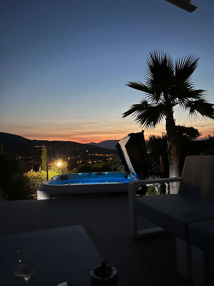 Villa Les Skalbo is located at the top of the hill, offering fantastic views of the stunning countryside from sunrise to sunset. There are terraces around the house, so no matter where the sun is, you can enjoy it on the terraces and there is shade as well.