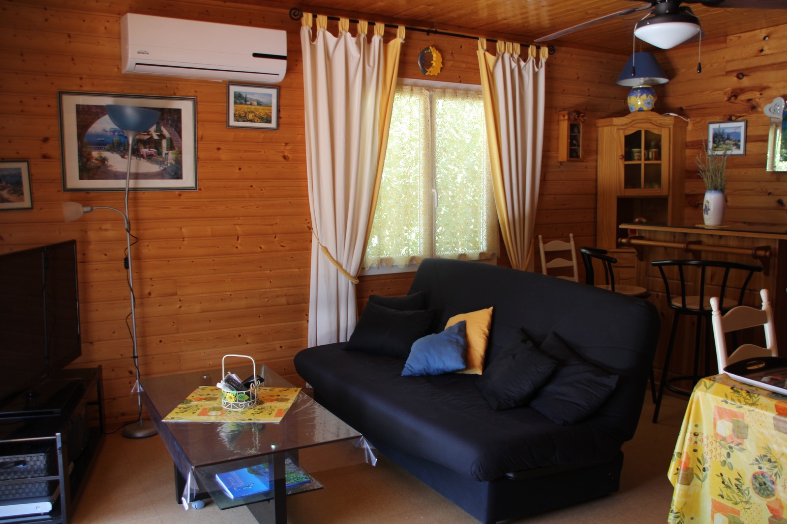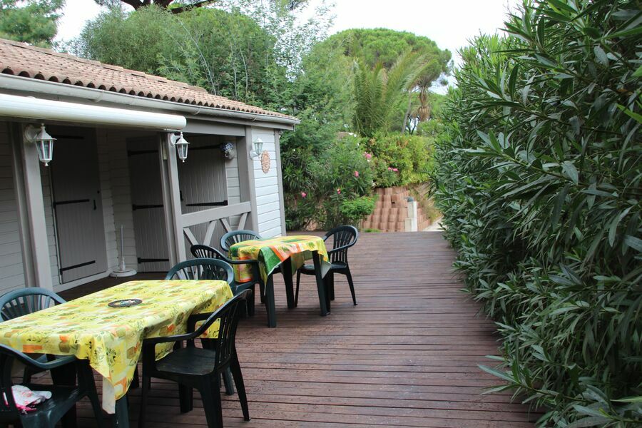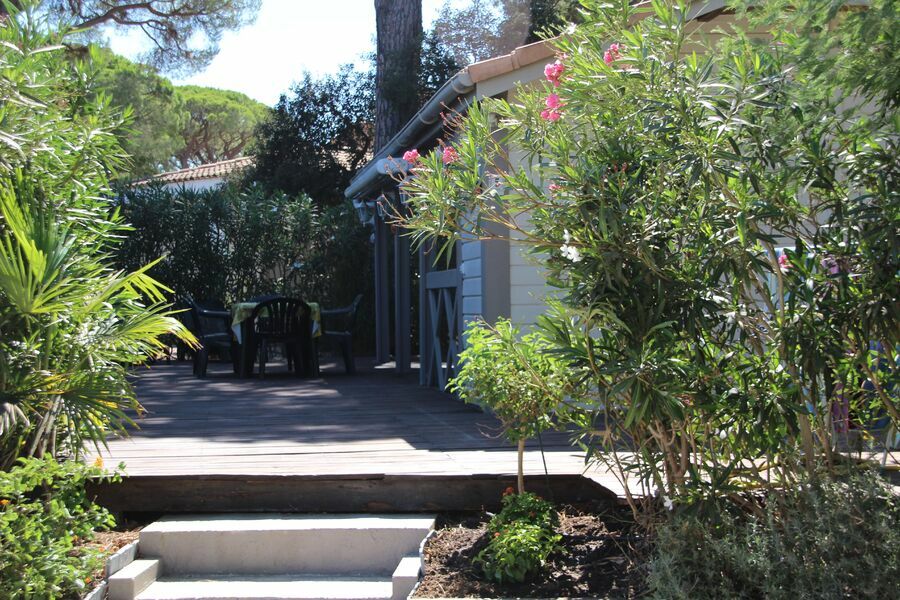 For rent Californian chalet with large terrace for 6 people in a beautiful 15 hectare estate planted with umbrella pines. The accommodation is ideally located in the center of the Gulf of Saint-Tropez.