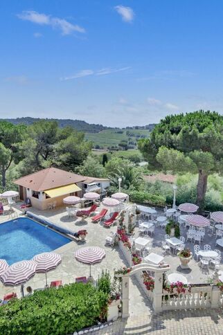 Built in 1830 on the heights of the Saint-Tropez peninsula, the Château de Meï-Lésé overlooks the sea and the vineyards that once occupied the area as far as the eye can see. A second building was built in 1930 on the property, which benefits from a very pretty flowered garden of about 5,000 m² opening a magnificent view of the Gulf of Cavalaire and the Golden Islands.The hotel is located near the beaches of Gigaro and Pampelonne, and typical villages such as Gassin, Ramatuelle, Grimaud and Saint-Tropez. There are many walking and cycling routes from the castle to the sea and to the surrounding countryside through the woods or along the old railway track.
