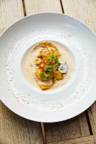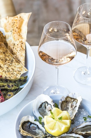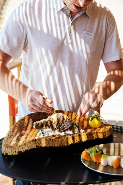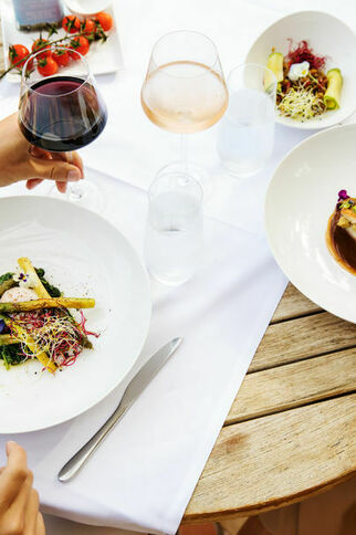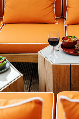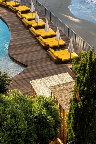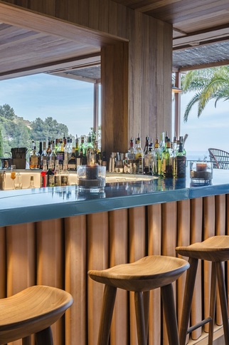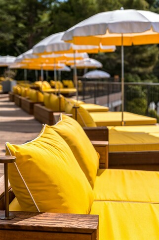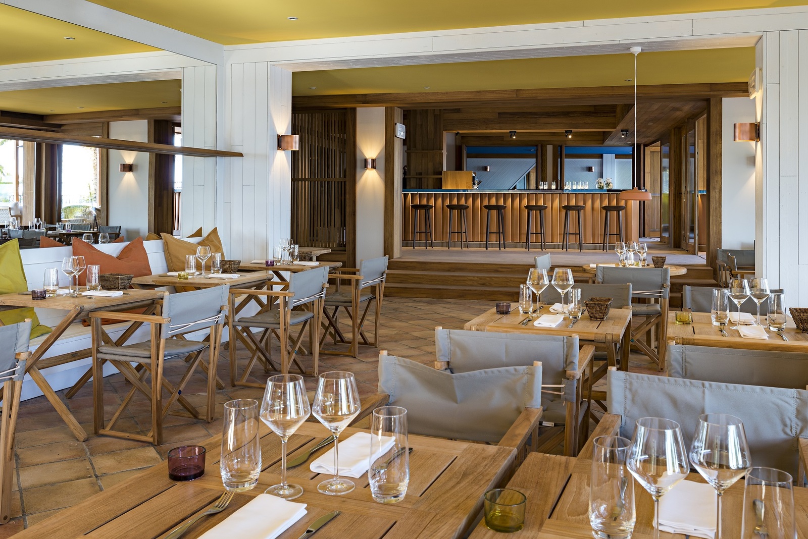 Le Pool House" restaurant serving gourmet salads, wood-grilled meats and colorful cocktails.