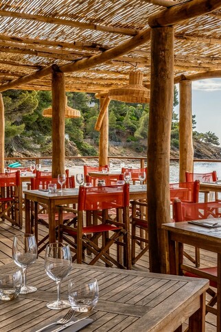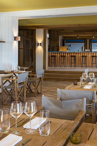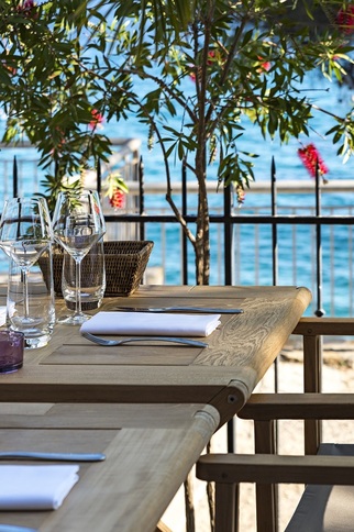 Le Loup de Mer" restaurant with terrace overlooking the sea.