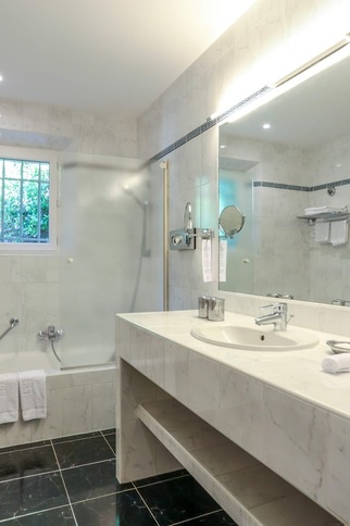 Located by the sea between Sainte-Maxime and Grimaud, overlooking the legendary bay of the Golfe de Saint-Tropez, the four-star Villa Les Rosiers combines beauty and luxury in a prestigious setting where you can discover flowering gardens, a lounge and a swimming pool.A magnificent "home".