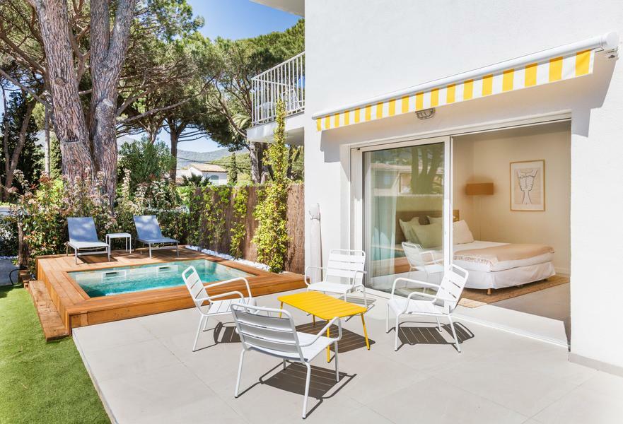 With a view over the sea or the pine forest, our 20 double or family rooms all have a terrace and some have a private swimming pool.A charming 4-star hotel, it offers a peaceful, sunny break on the Côte d'Azur, in the Gulf of Saint-Tropez, with personalised, intimate service.