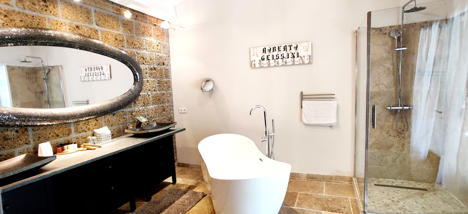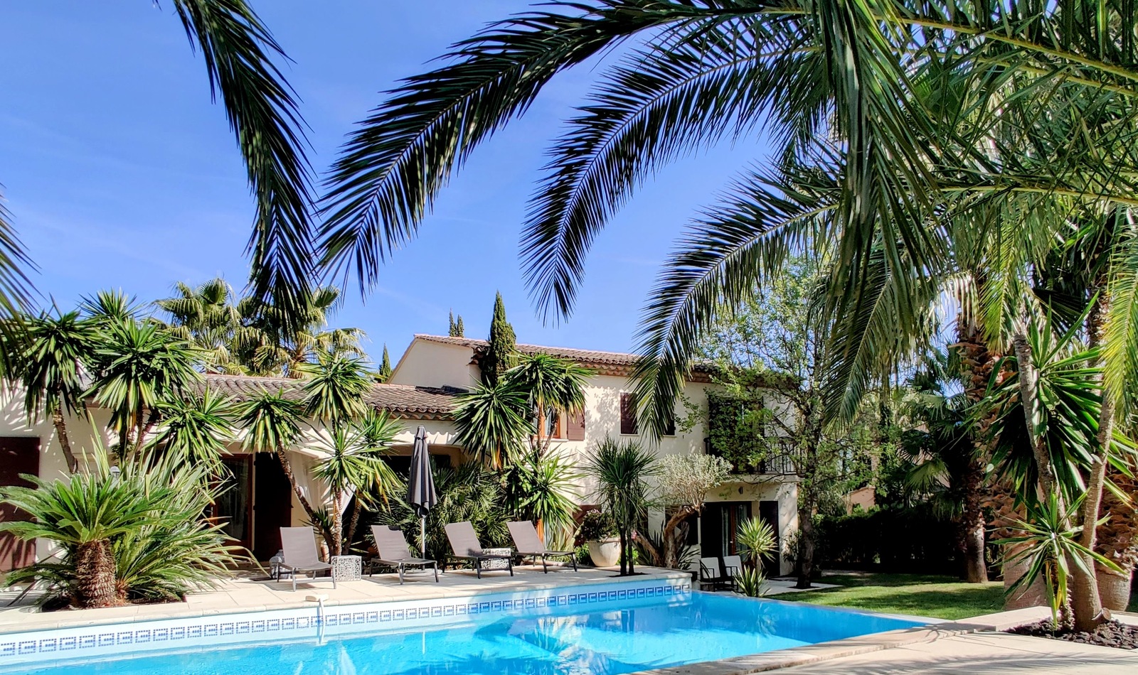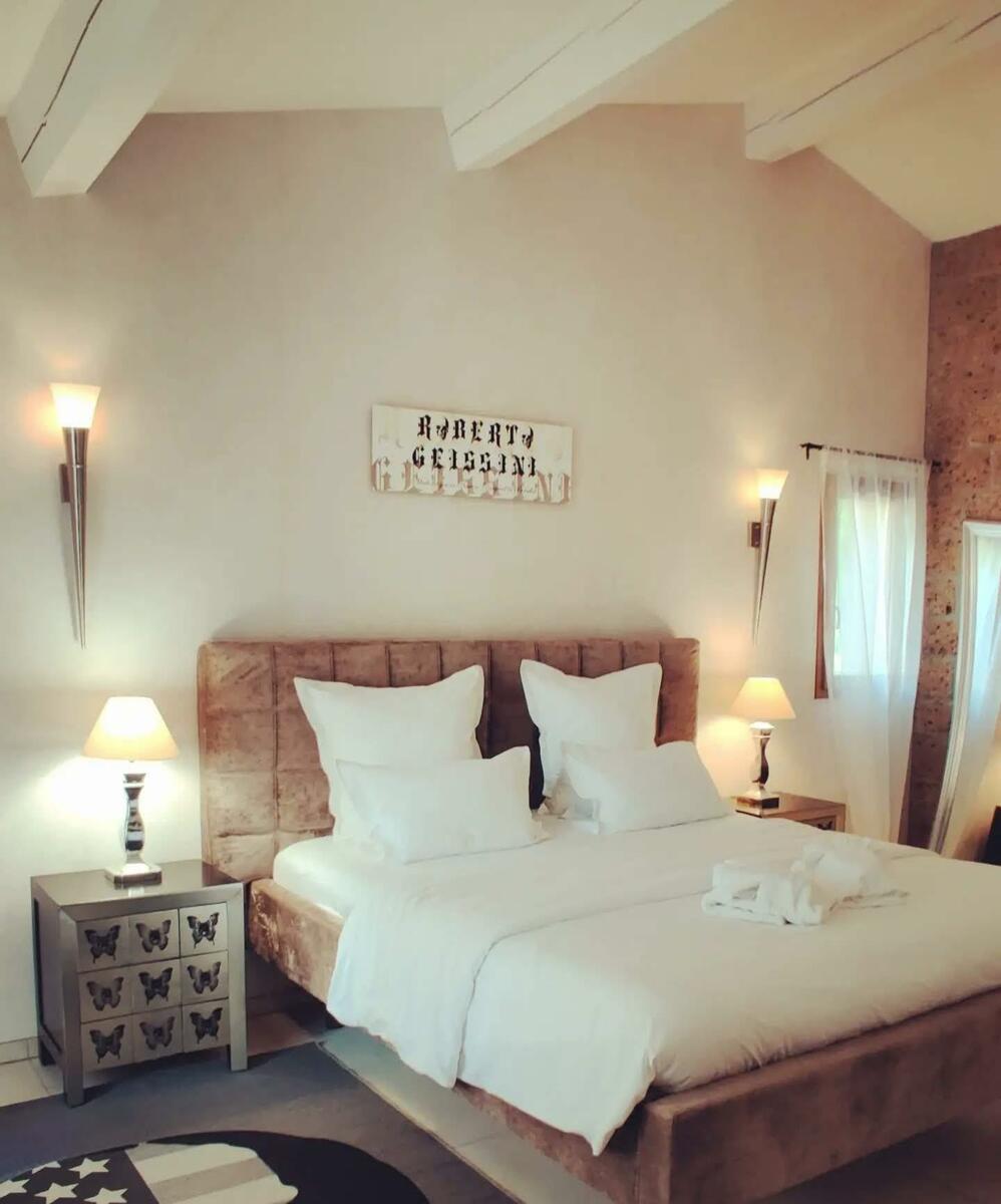 The elegant Maison Prestige Roberto Geissini, near the centre of Grimaud, is surrounded by a magnificent garden with 3 swimming pools, sunloungers and umbrellas, various rest areas and hammocks.All 16 rooms, including 4 suites, are unique. Each room is air-conditioned and has a large double bed, wardrobe, flat-screen TV, minibar, safe and fully-equipped en suite bathroom with free toiletries, slippers and hairdryer. For maximum comfort, bathrobes and a coffee machine are available in the suites.