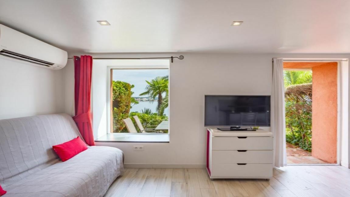 Lou Trelus has a stunning sea view and a lovely park in the Provencal style. There is a tennis club, golf course, and sailing club 50 meters from a public and private sandy beach.