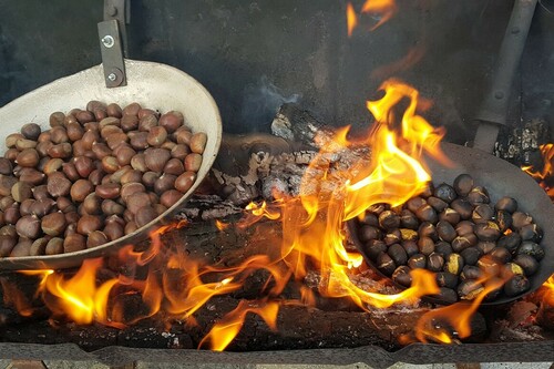 Roasted chestnuts and local wine for a castagnade offered to all,