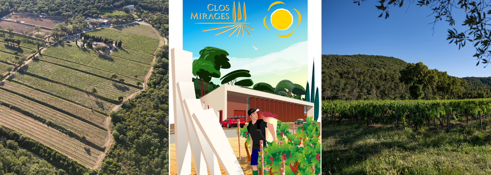 Located on the Saint-Tropez peninsula, between Grimaud and Ramatuelle, in the commune of La Môle, Clos Mirages is a family-run wine estate covering 15 hectares on the edge of the Massif des Maures.Located on the Saint-Tropez peninsula, between Grimaud and Ramatuelle, in the commune of La Môle, Clos Mirages is a 15-hectare family wine estate nestled on the edge of the Massif des Maures. This vineyard, certified organic and classified as A.O.P. Côtes de Provence, benefits from a privileged terroir, ideal for growing Provençal grape varieties, with a fully respectful approach to the environment.