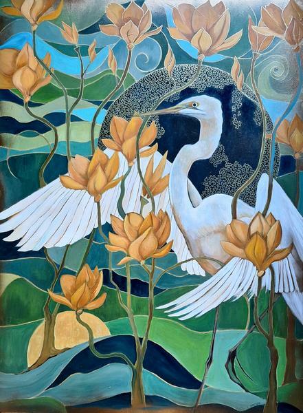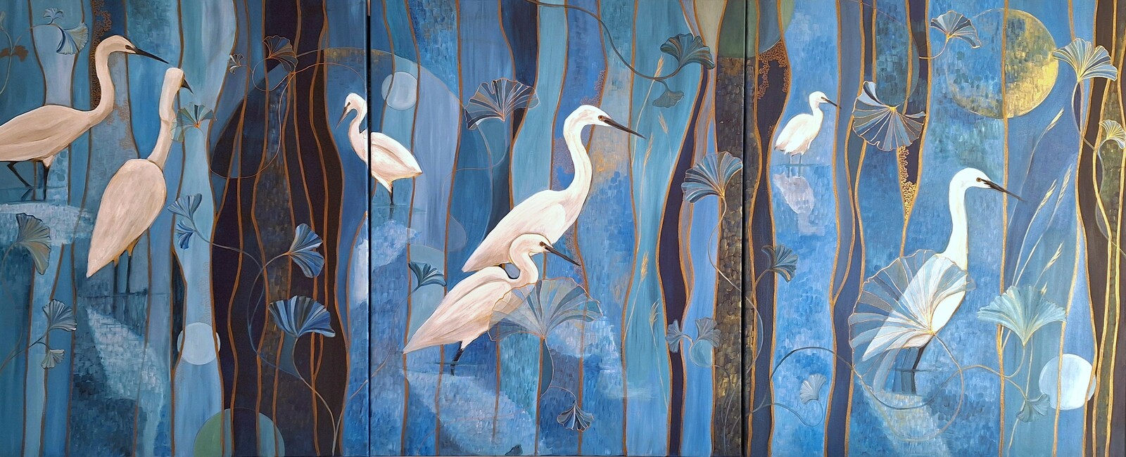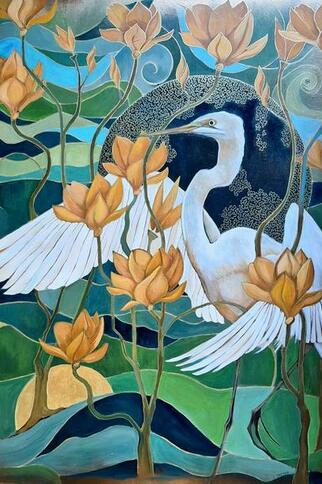 NATURE, BIRDS, FEMININITY and NEW ART are her main sources of inspiration.