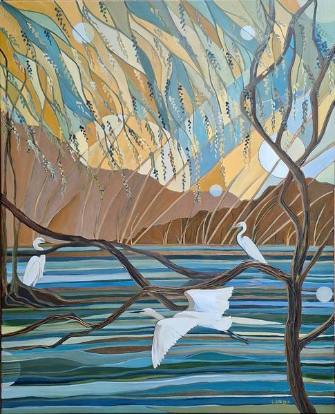 Indeed, Laura has a passion for nature photography. At first, she went off on her own to recharge her batteries and draw inspiration from the wonders the world had to offer. Fascinated by birds, she takes the time to observe and photograph them. There's a constant need to store up beauty; it's an essential emotion for her, protecting her from a fast-paced world. Then, it's through painting (acrylic) and, more occasionally, stained glass and sculpture that Laura transmits all the freedom she feels, all those beautiful emotions.