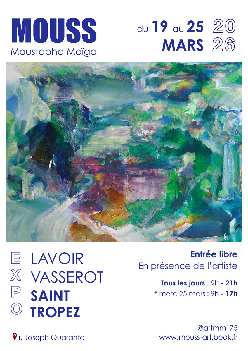 Mouss has won numerous awards at competitions and shows in France and abroad, and has been exhibiting internationally for over 30 years.A professional, multidisciplinary and self-taught artist, Moustapha Maiga, known as MOUSS, returns to present a new selection of her unique works - ranging from figurative to abstract - at the Lavoir Vasserot in St Tropez.