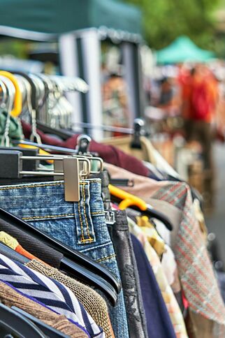 Garage sale organized by the family association in front of the swimming pool