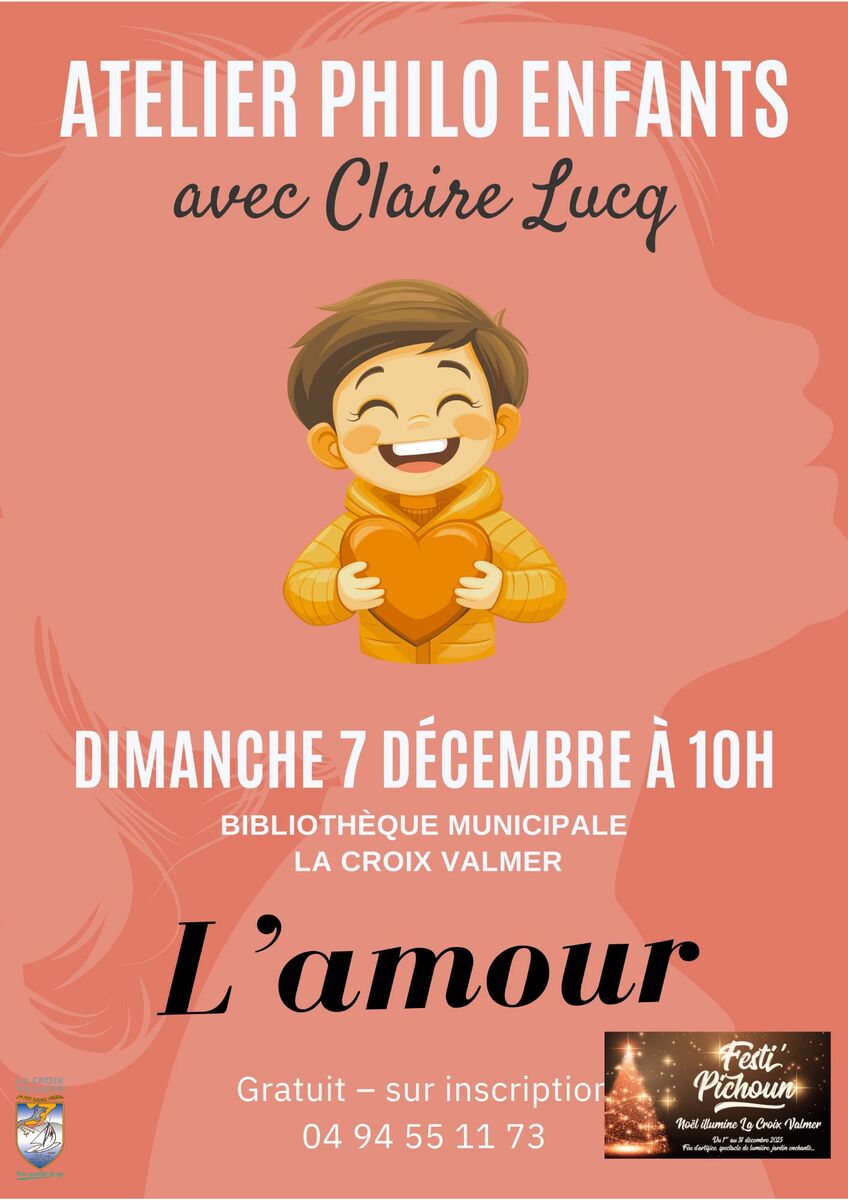 Library activities: philosophy workshop led by Claire Lucq. Register at the library (limited space available).