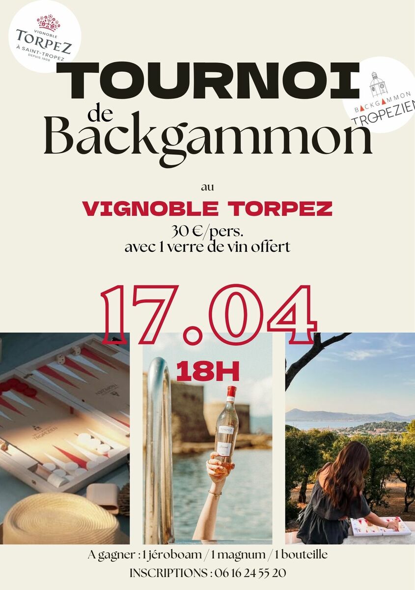 A unique event combining elegance, conviviality and competitive spirit: Backgammon tournament at Vignoble Torpez on April 17 at 6pm, in partnership with Backgammon Tropézien.