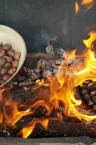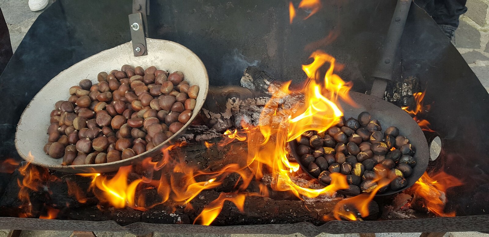 Roasted chestnuts and local wine for a castagnade offered to all,