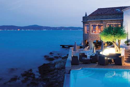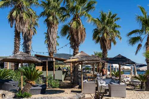 Beach restaurant with its feet in the water, set in one of the most unspoilt coves in the Gulf of Saint-Tropez.