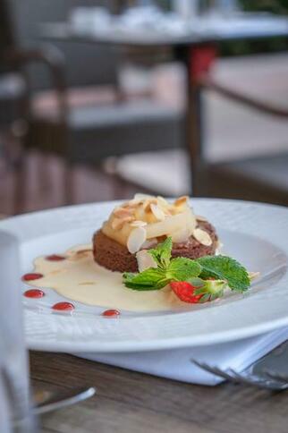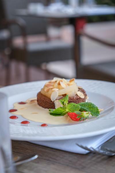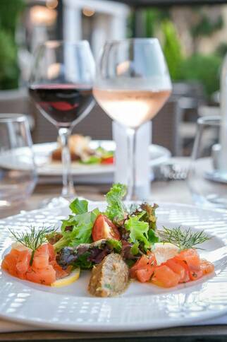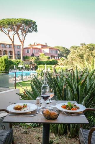 The hotel Les Jardins de Sainte-Maxime's restaurant at La Croisette serves its specialities, which include skewer of the sea and braised fennel, broccoli cake, back of place with ginger lemon zest, and pomegranate of veal balsamic sauce and crispy polenta.