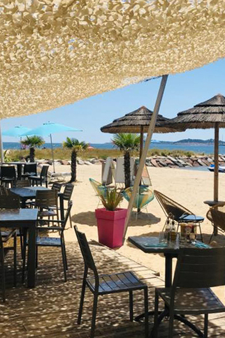 Come and enjoy a homemade burger or a salad with your feet in the sand with a breathtaking view of the Gulf of Saint-Tropez. We are ideally located in Grimaud between campsites and water sports. You can enjoy a boat trip or a jetski ride before enjoying a cold cocktail. The B Plage awaits you for a moment of relaxation and escape!
