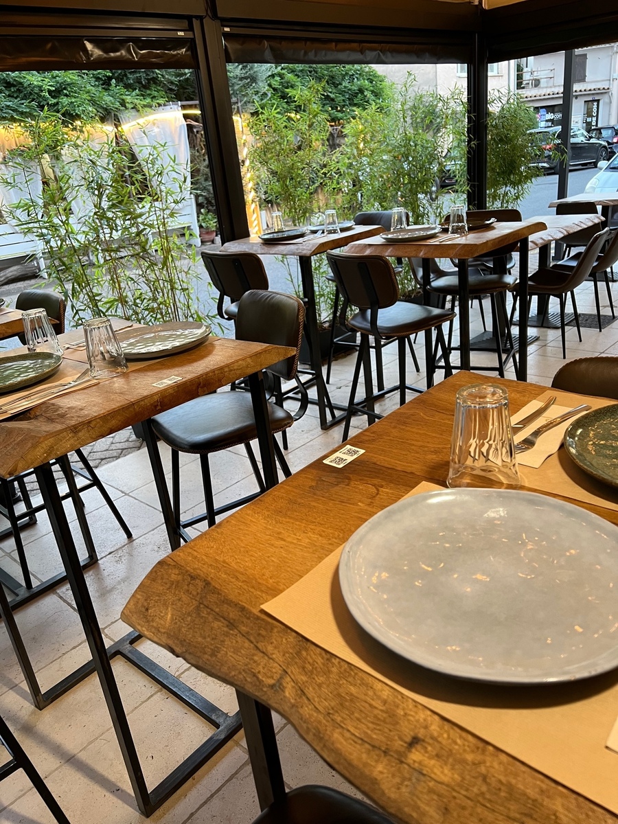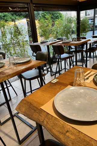 Specialising in matured meats cooked over a vegetable charcoal fire. All dishes are cooked by the chef. Two terraces to welcome you, one on the street side and one on the garden side. More than 70 wines on the menu.