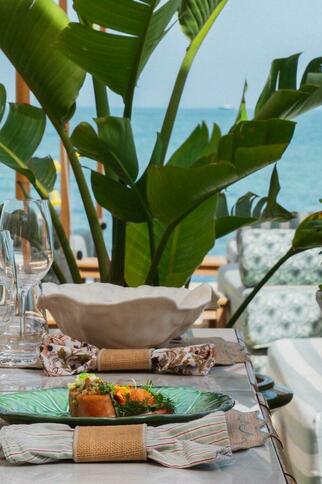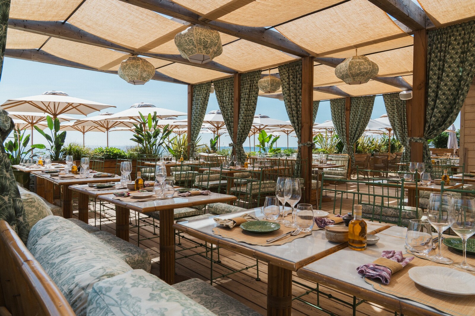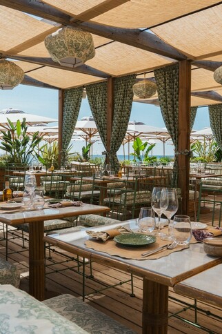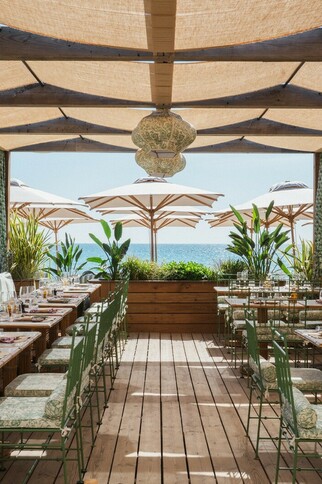 Facing the turquoise waters of the bay, the atmosphere of Cybele exudes the softness and natural charm of a seaside home, where you feel at home, with the desire to return, again and again, as you would to a family home. Designed by Cordelia de Castellane, Artistic Director of Dior Maison, the décor blends weathered wood, woven rattan and linen in pastel green tones, creating a timeless interlude. Come with friends or family to enjoy Mathieu Pacaud's simple yet refined Mediterranean cuisine.Facing the sea, enjoy our king-size sunbeds, lulled by the murmur of the waves.